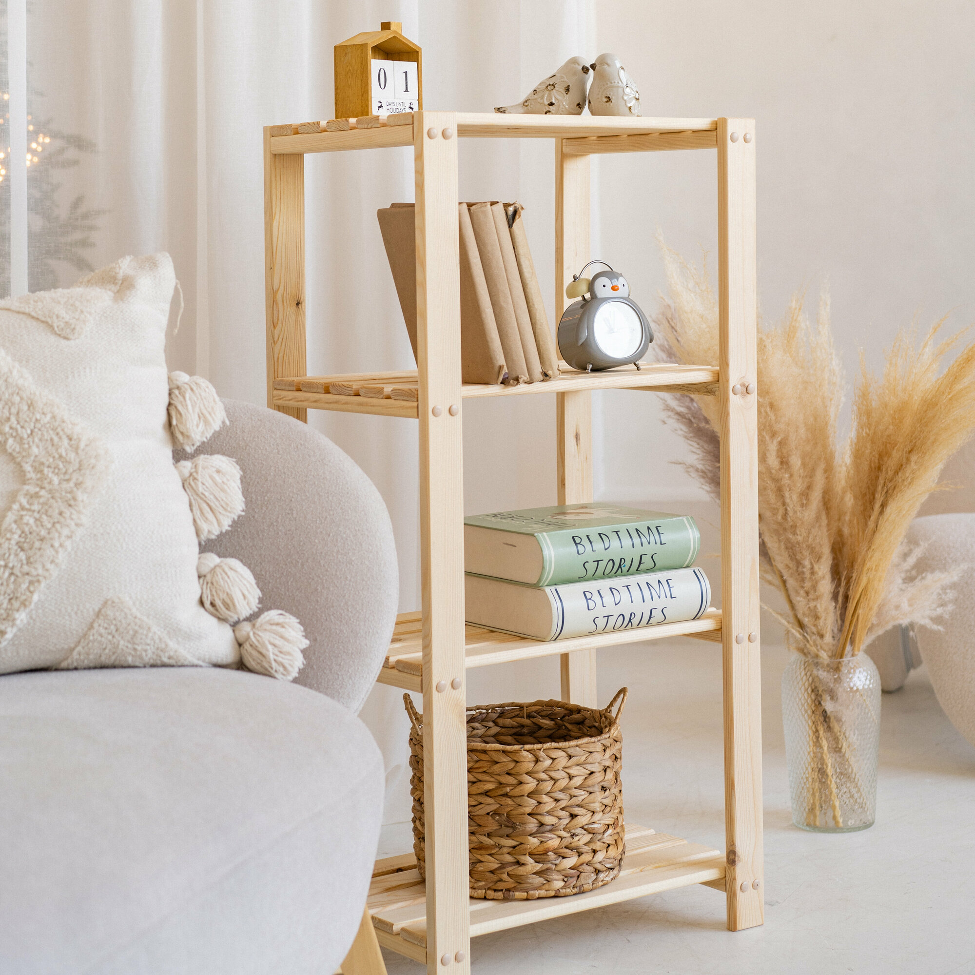 Отзывы на Стеллаж для ванной, книг и игрушек из натурального дерева с 4 полками, 100х50х34 см, цвет сосна
