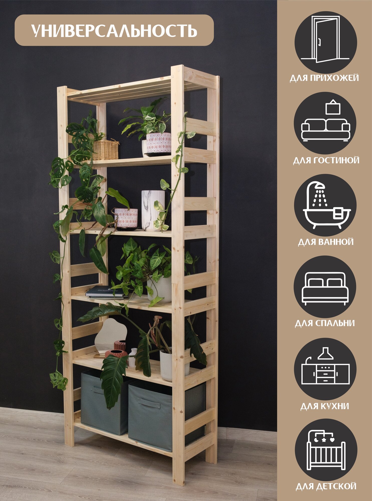 10 цен на Стеллаж деревянный высотой 210 см, 6 больших полок, шлифован до премиум качества