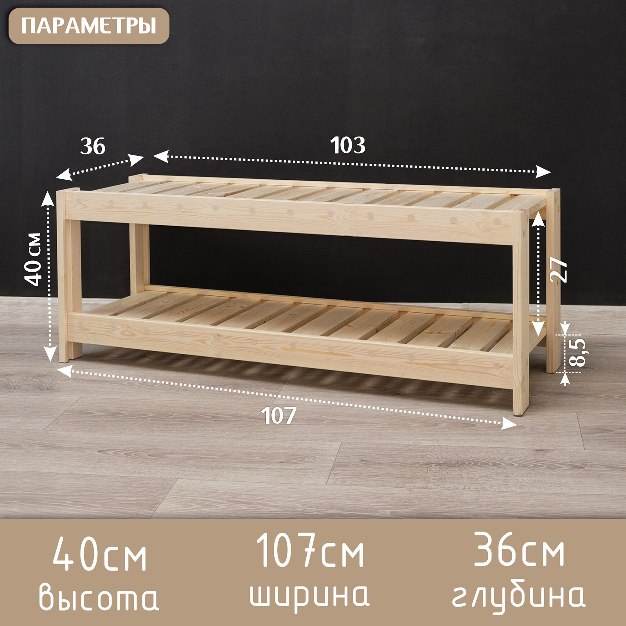 Стеллаж для воды деревянный отшлифован, 2 полки, 66*36*34 см 2 350 ₽