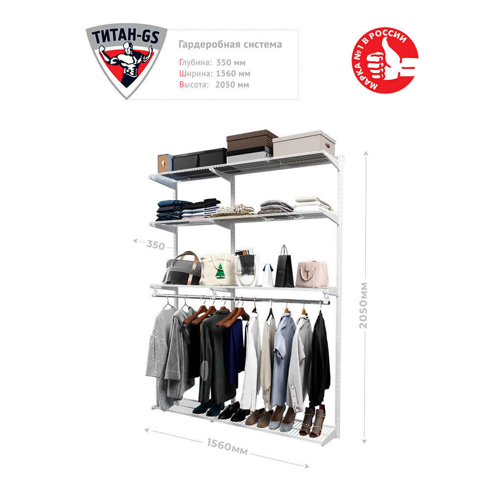 Гардеробная система Титан-GS Практичная гардеробная 1500 белая 350 информация: