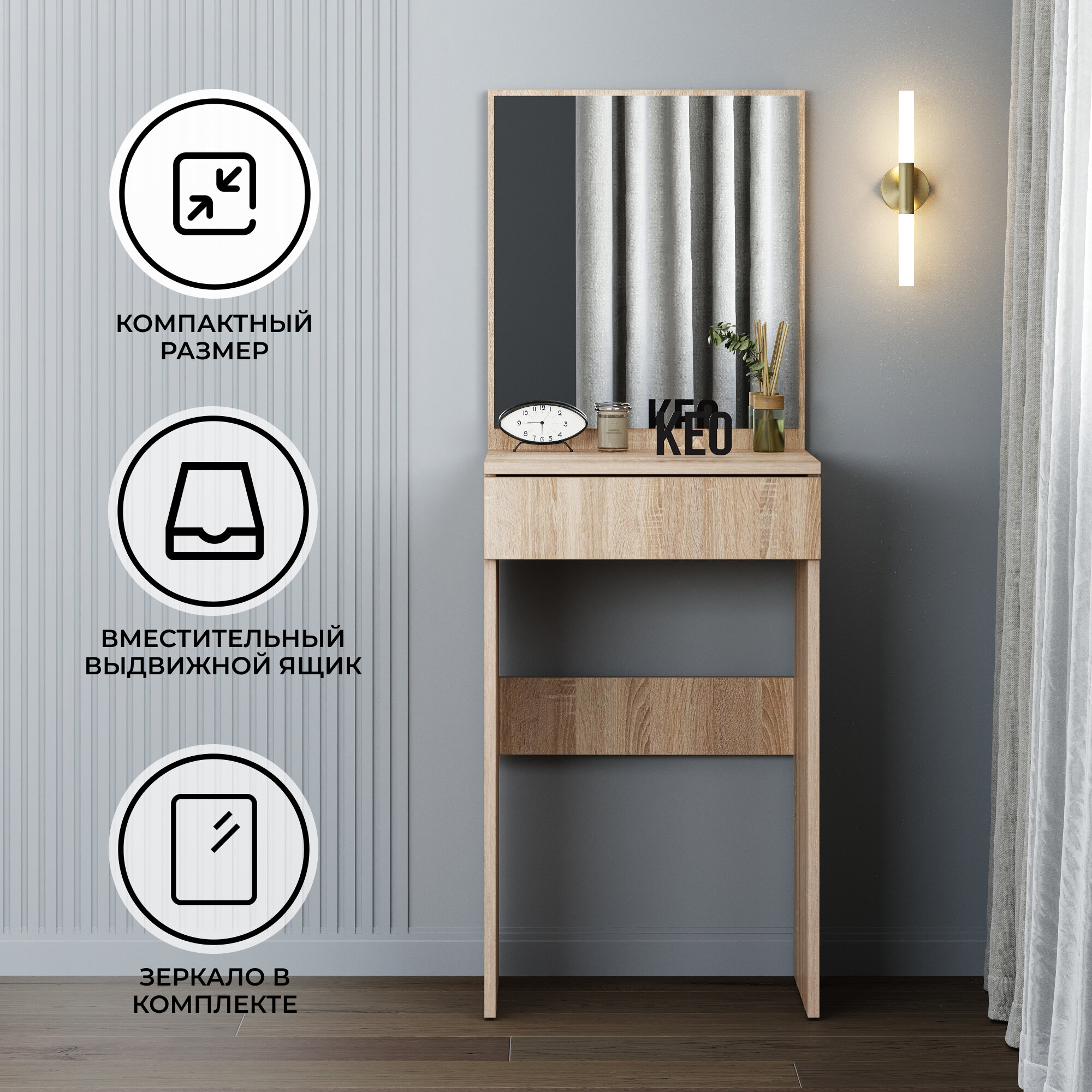 Туалетный столик с зеркалом и выдвижным ящиком Кео СТЛ-100 дуб сонома информация:
