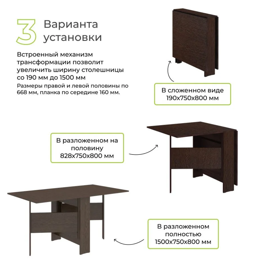 Раскладной стол-книжка Венге 190 BONMEBEL, 150 х 80 х 75 см информация: