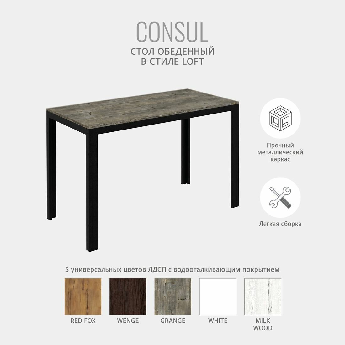 Стол кухонный CONSUL, серый, обеденный стол лофт, 120х60х75 см, гростат информация: