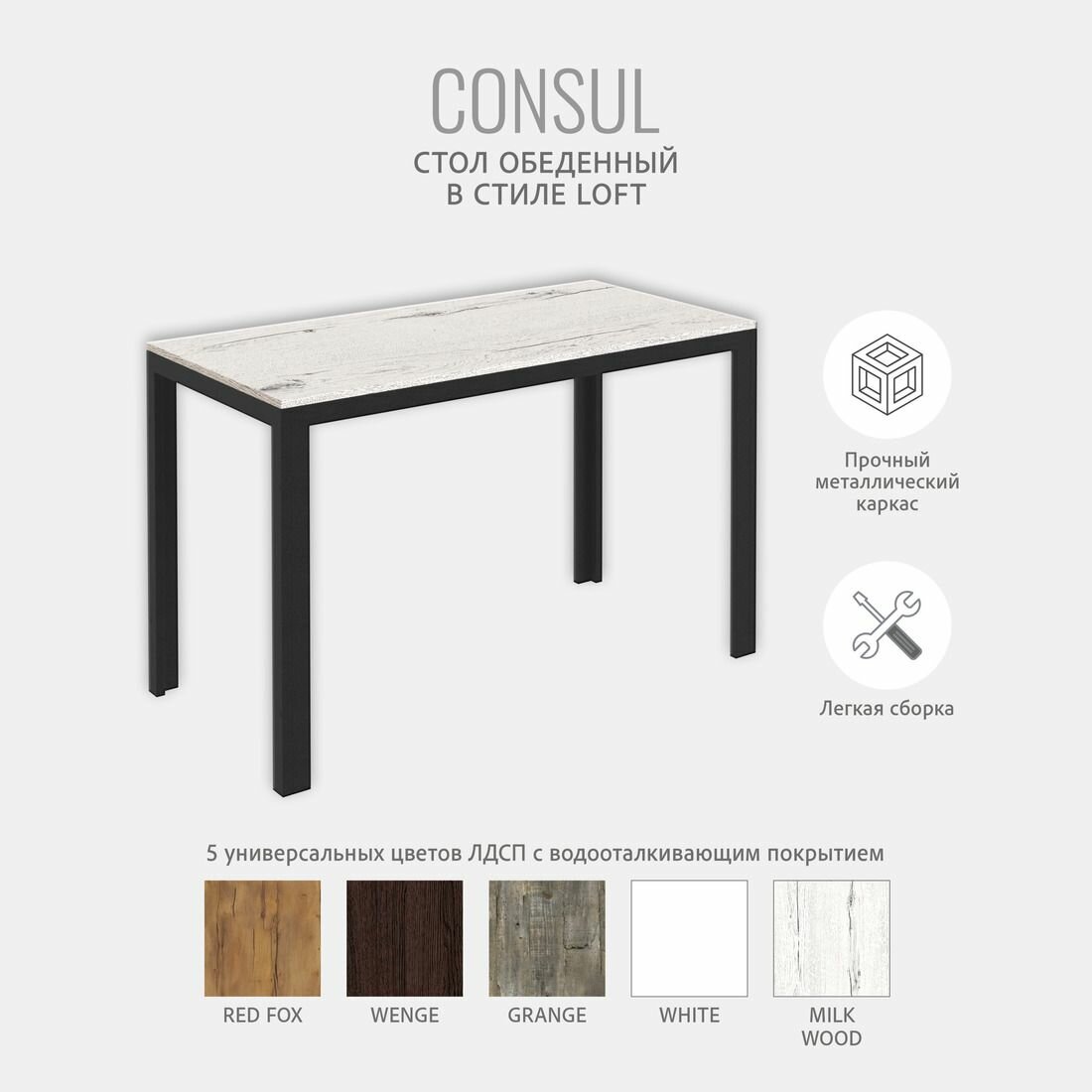 Стол кухонный CONSUL, белый, обеденный стол лофт, 120х60х75 см, гростат 7 712 ₽