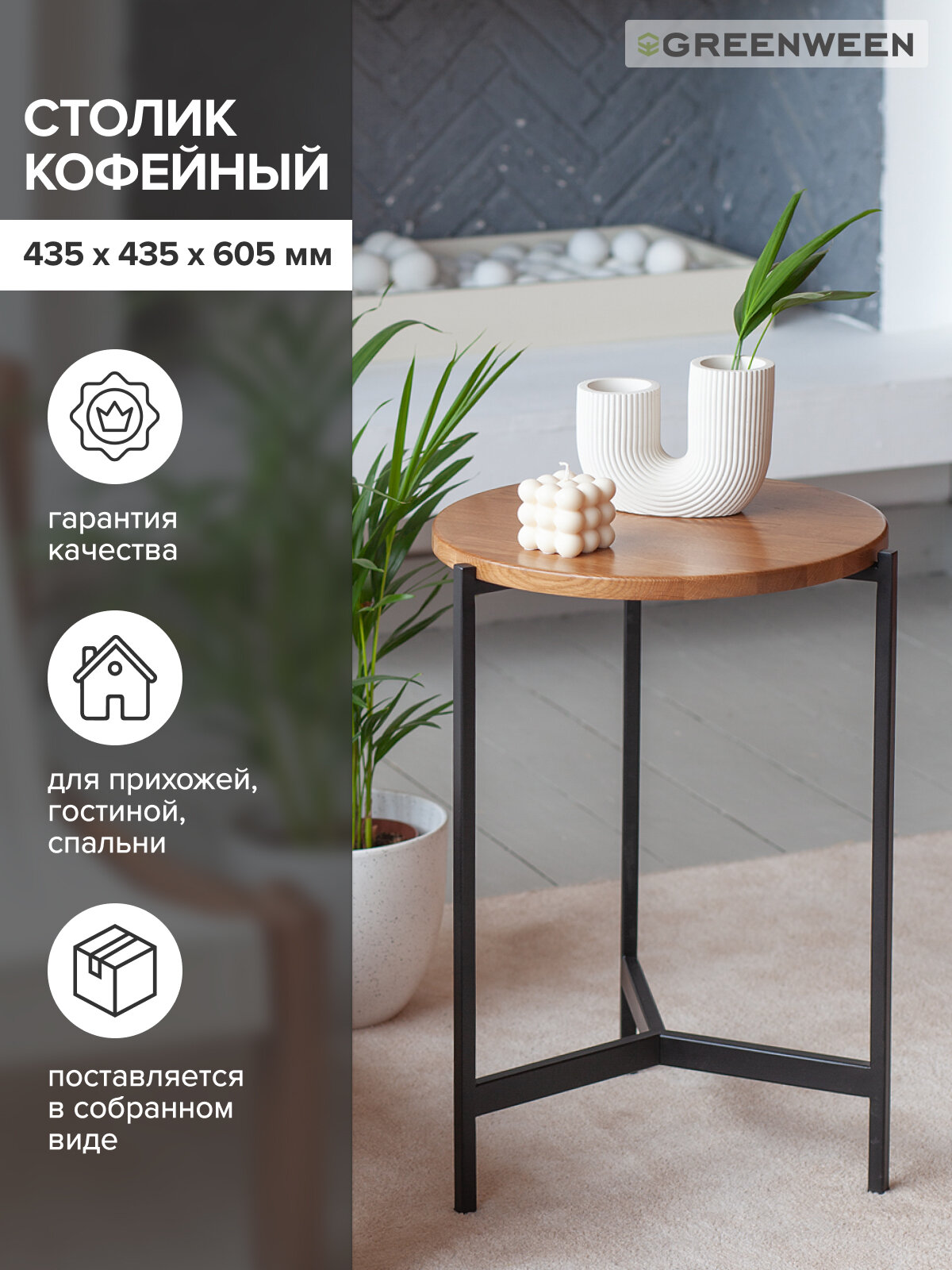 Столик кофейный Greenween ODRI, черный/дуб