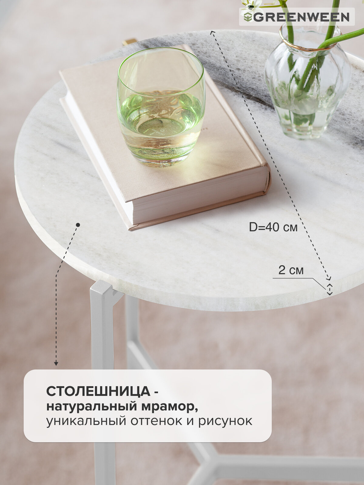 Столик кофейный Greenween ODRI, белый/мрамор