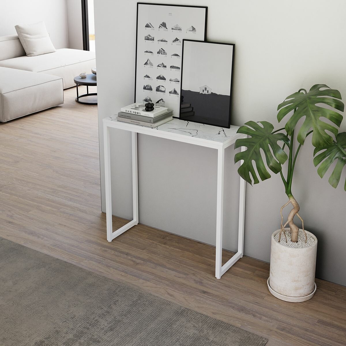 10 цен на Туалетный столик консольный стол лофт, Белый / Оникс