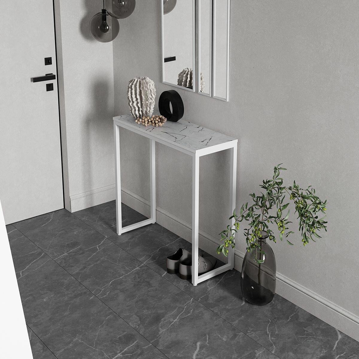 Туалетный столик консольный стол лофт, Белый / Оникс информация: