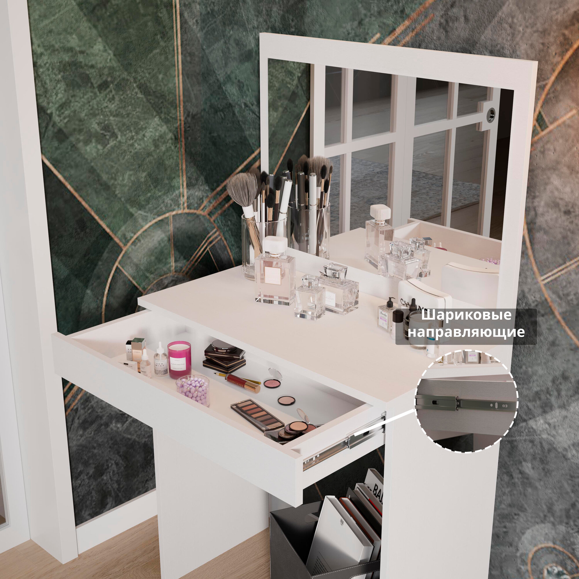 10 цен на Туалетный столик белый, с зеркалом ТриЯ (ВхШхГ) 125х67х37 см, Никки