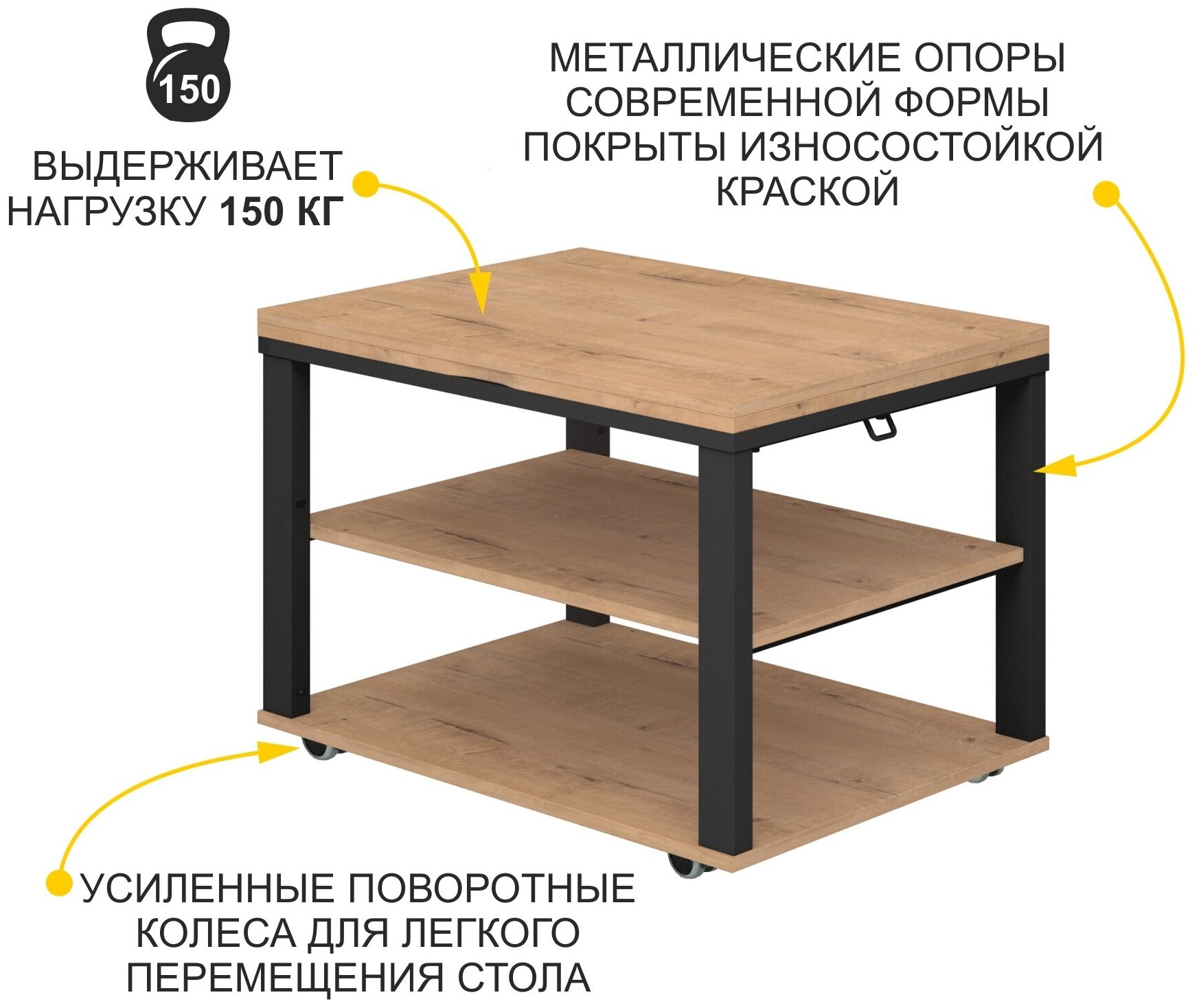 10 цен на Журнальный стол-трансформер Рим 24.1 (03) Дуб Бунратти/Черный, 75х55х54 см