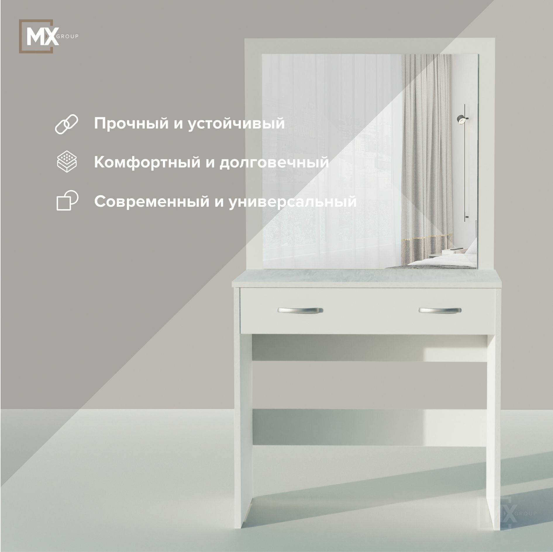 Стол туалетный Ронда СТ-01, Белое Дерево, ЛДСП, с ящиком, зеркалом, 1445х436х800, интерьер-центр 5 000 ₽