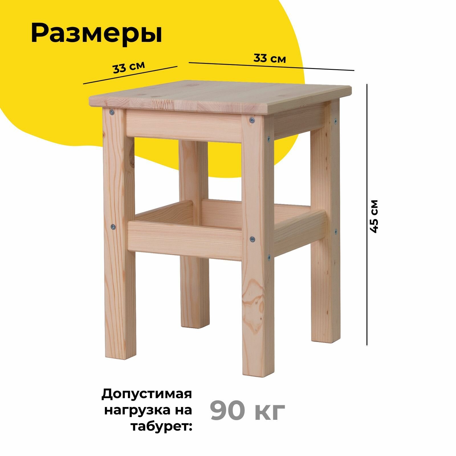 Табурет деревянный Одвар для кухни из массива сосны, без отделки 33х33 см 1 075 ₽
