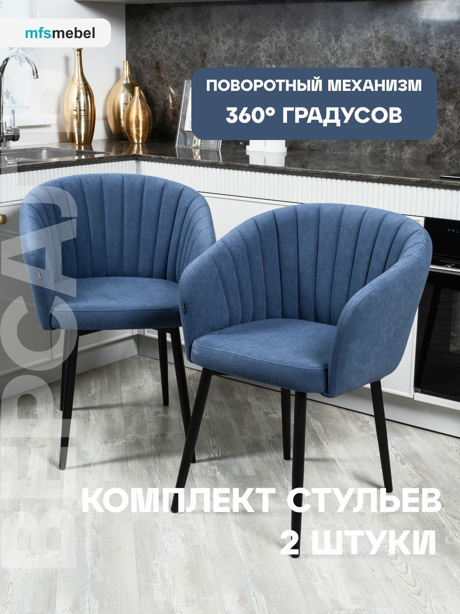 Отзывы на Комплект стульев с поворотным механизмом 360 градусов Версаль синий, стулья кухонные 2 штуки