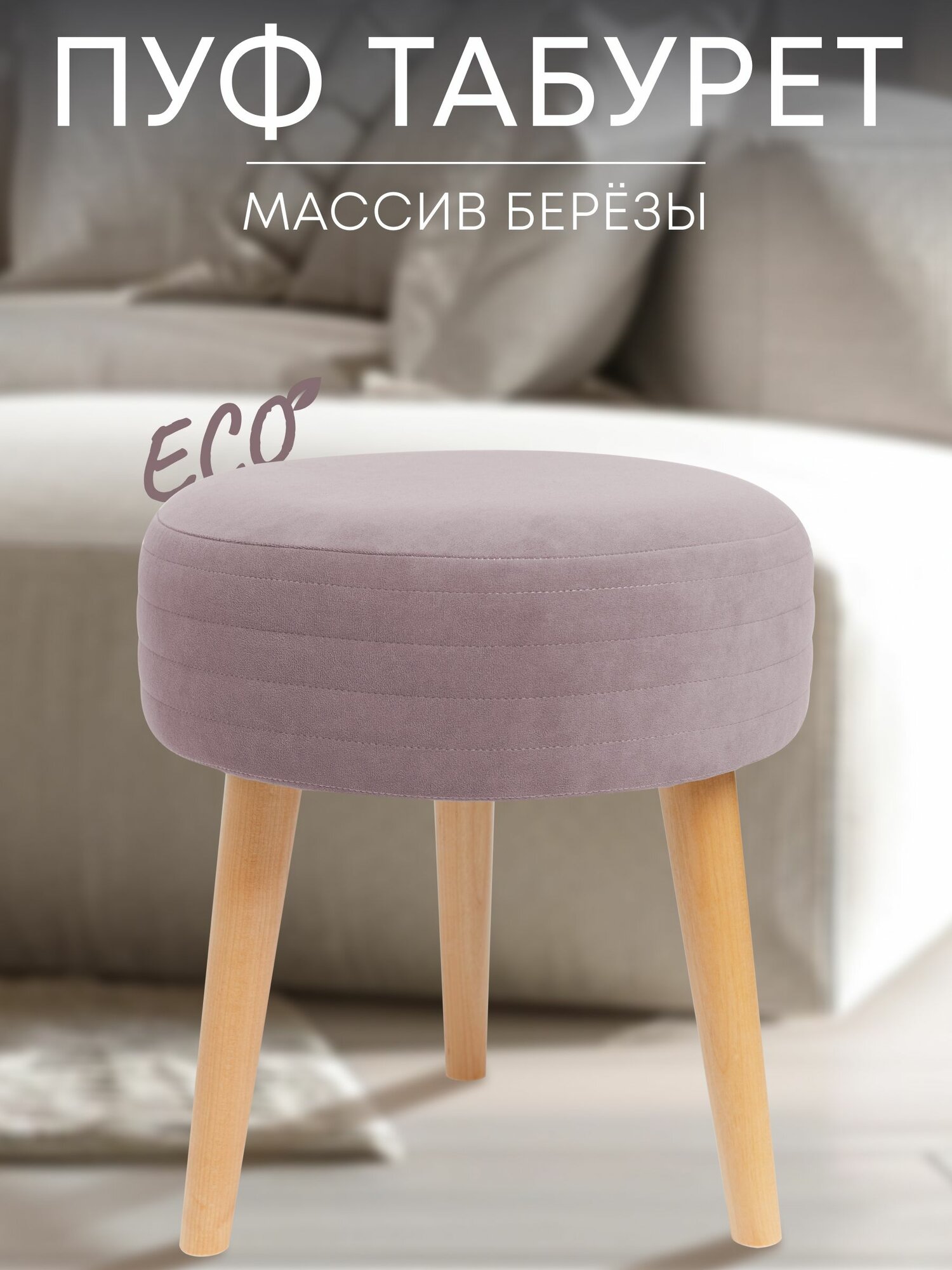 Табурет мягкий, пуфик для кухни, прихожей, туалетного столика 39х39х44 см бежевый Сон-Сервис 2 300 ₽