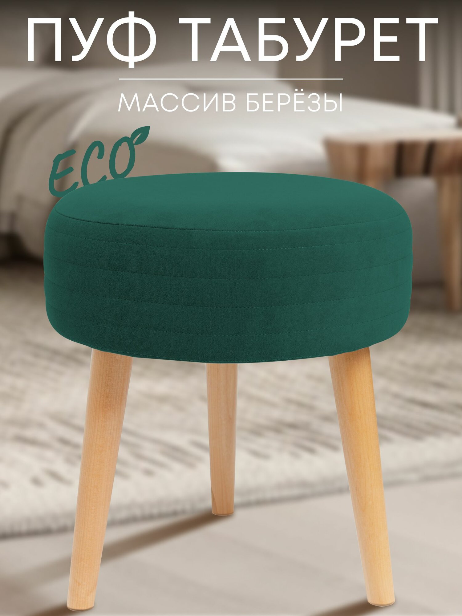 10 цен на Табурет мягкий, пуфик для кухни, прихожей, туалетного столика 39х39х44 см зеленый Сон-Сервис