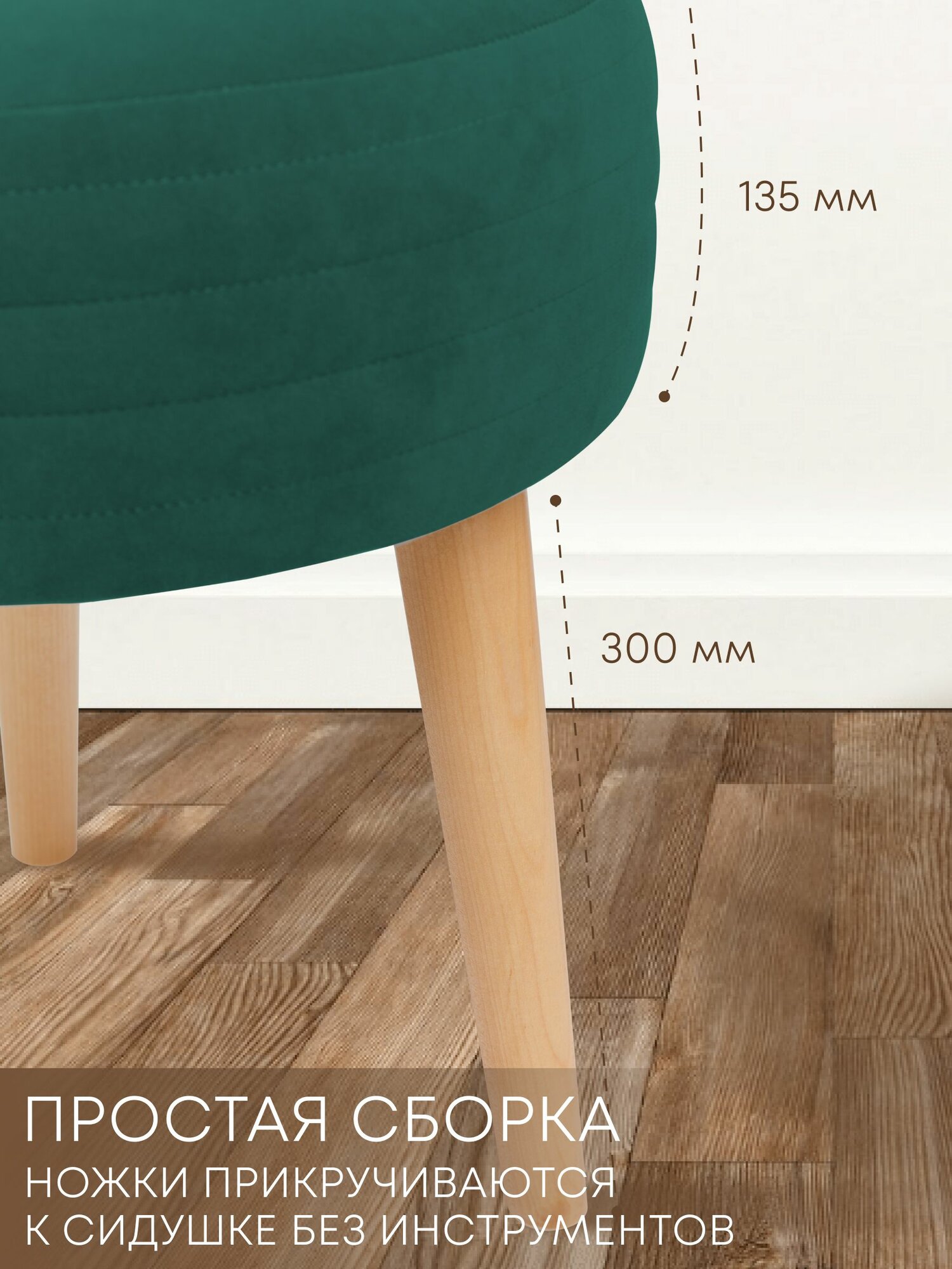 Табурет мягкий, пуфик для кухни, прихожей, туалетного столика 39х39х44 см изумрудный Сон-Сервис 2 690 ₽