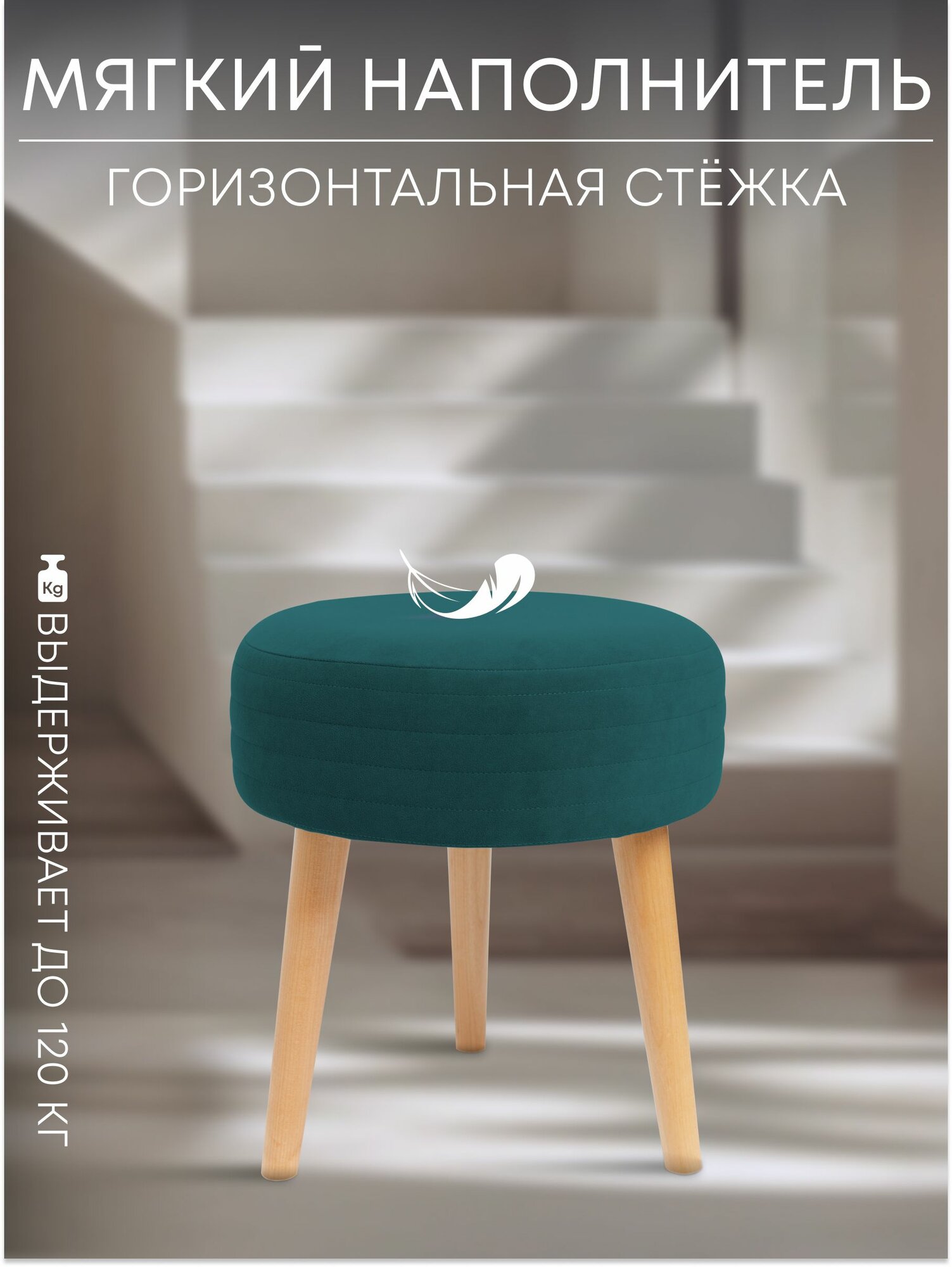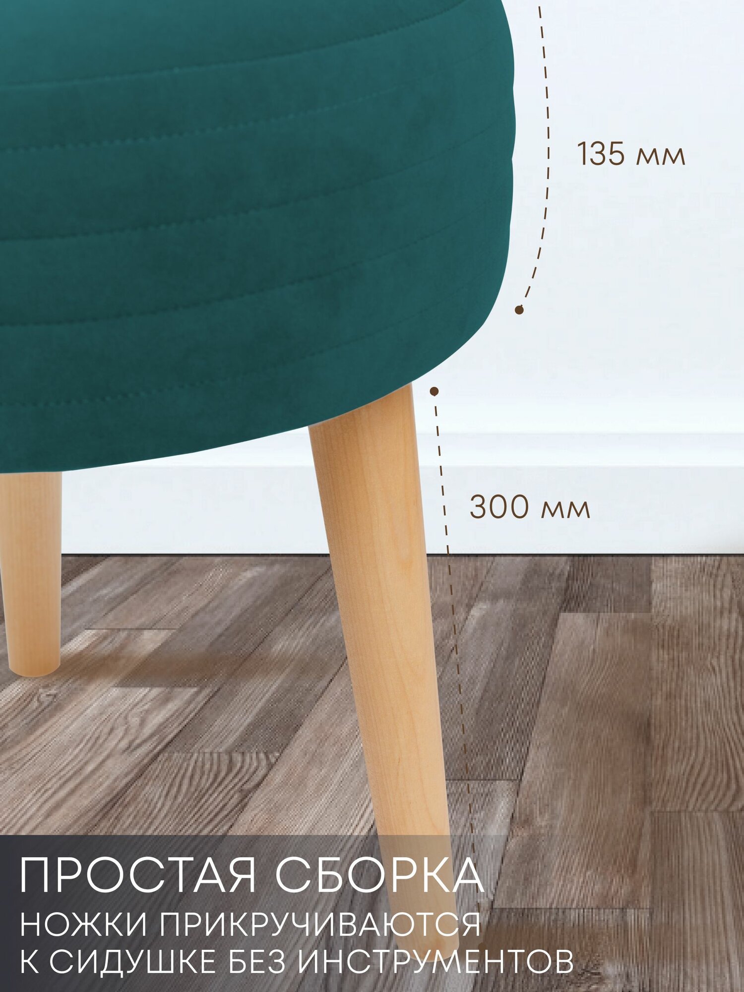 Табурет мягкий, пуфик для кухни, прихожей, туалетного столика 39х39х44 см изумрудный Сон-Сервис информация: