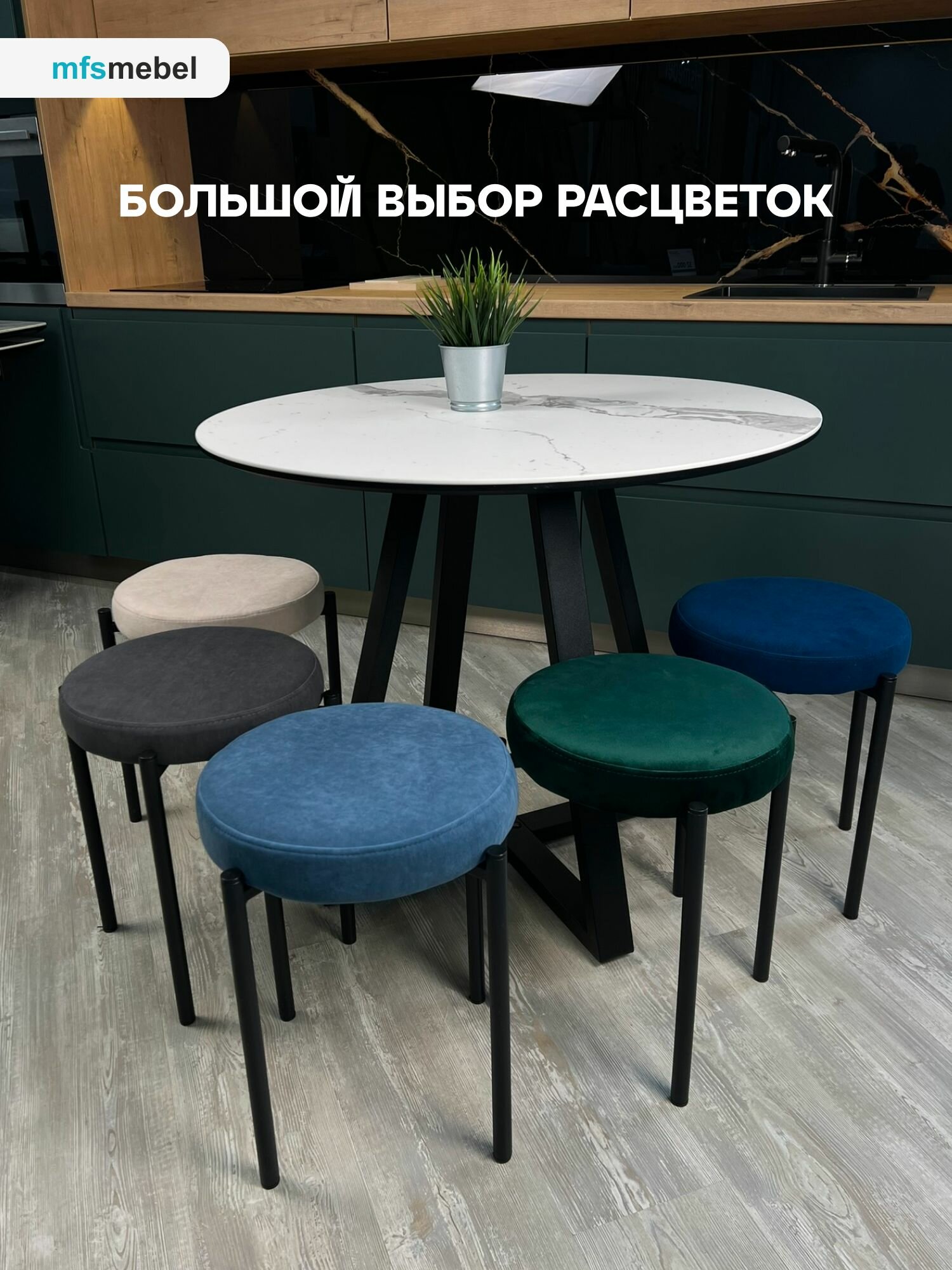 Комплект мягких табуретов Канапе 4 штуки, зеленый/белые ноги 8 000 ₽