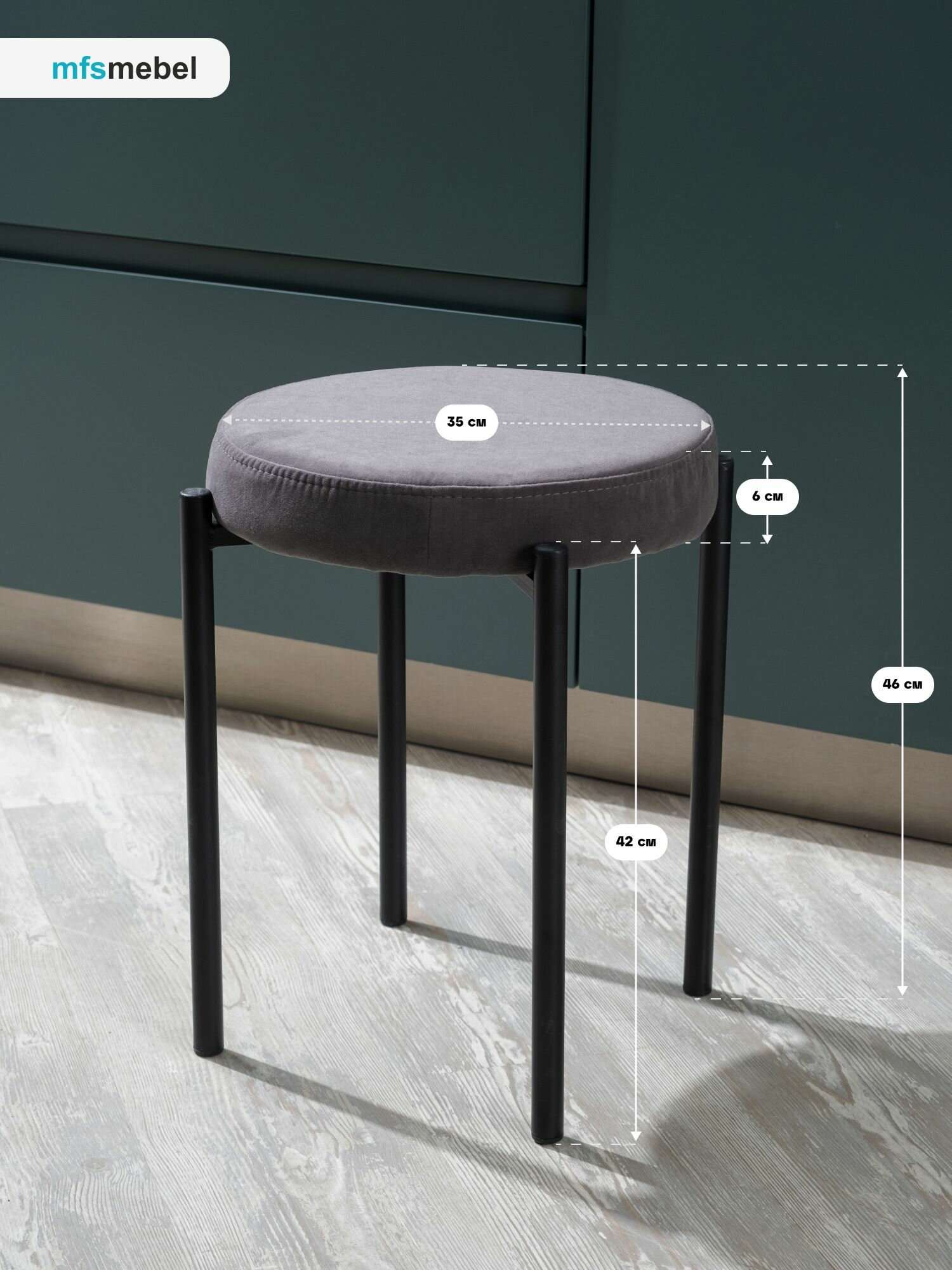 Комплект мягких табуретов Канапе 4шт, графит/белые ноги 8 000 ₽