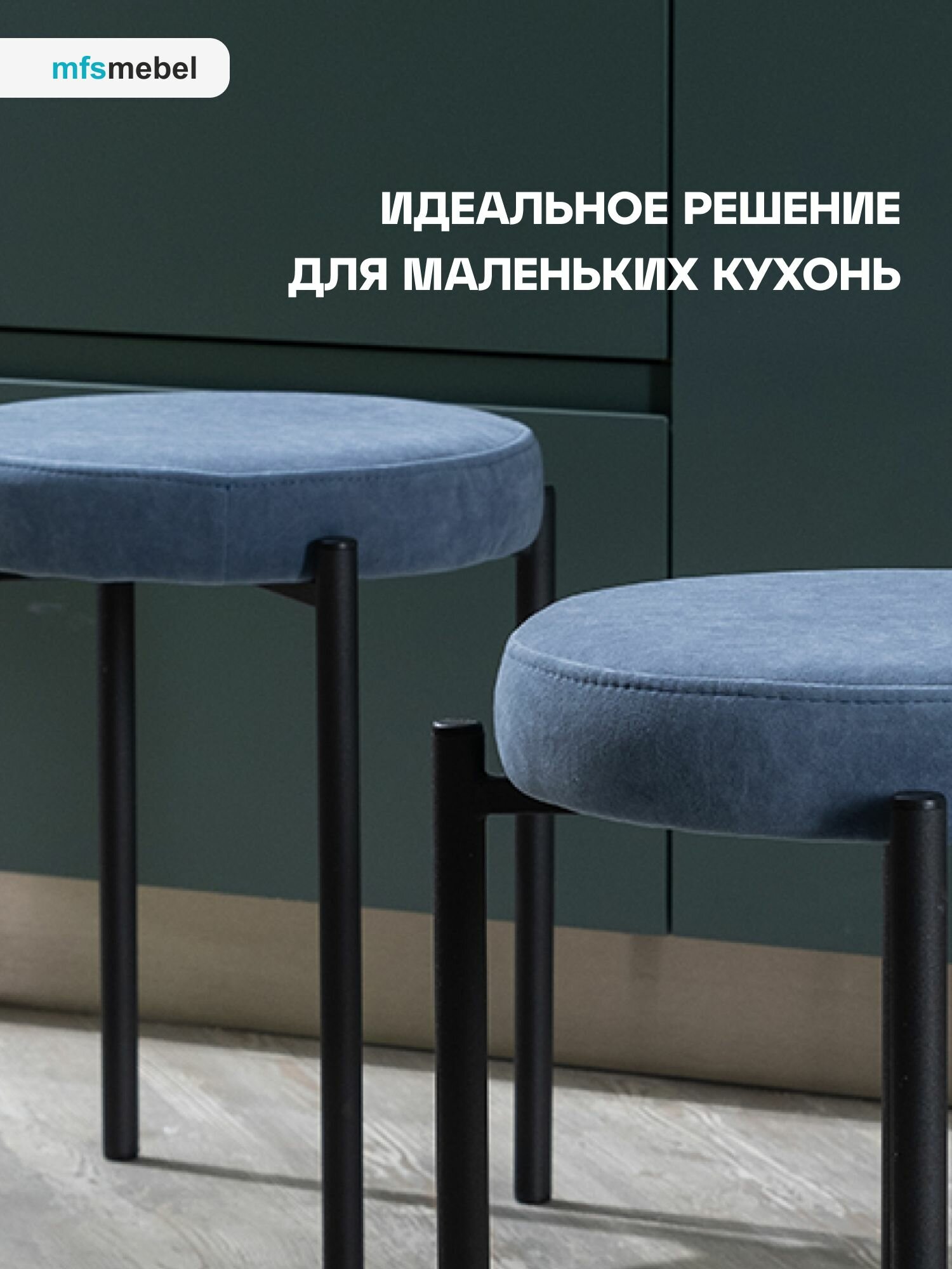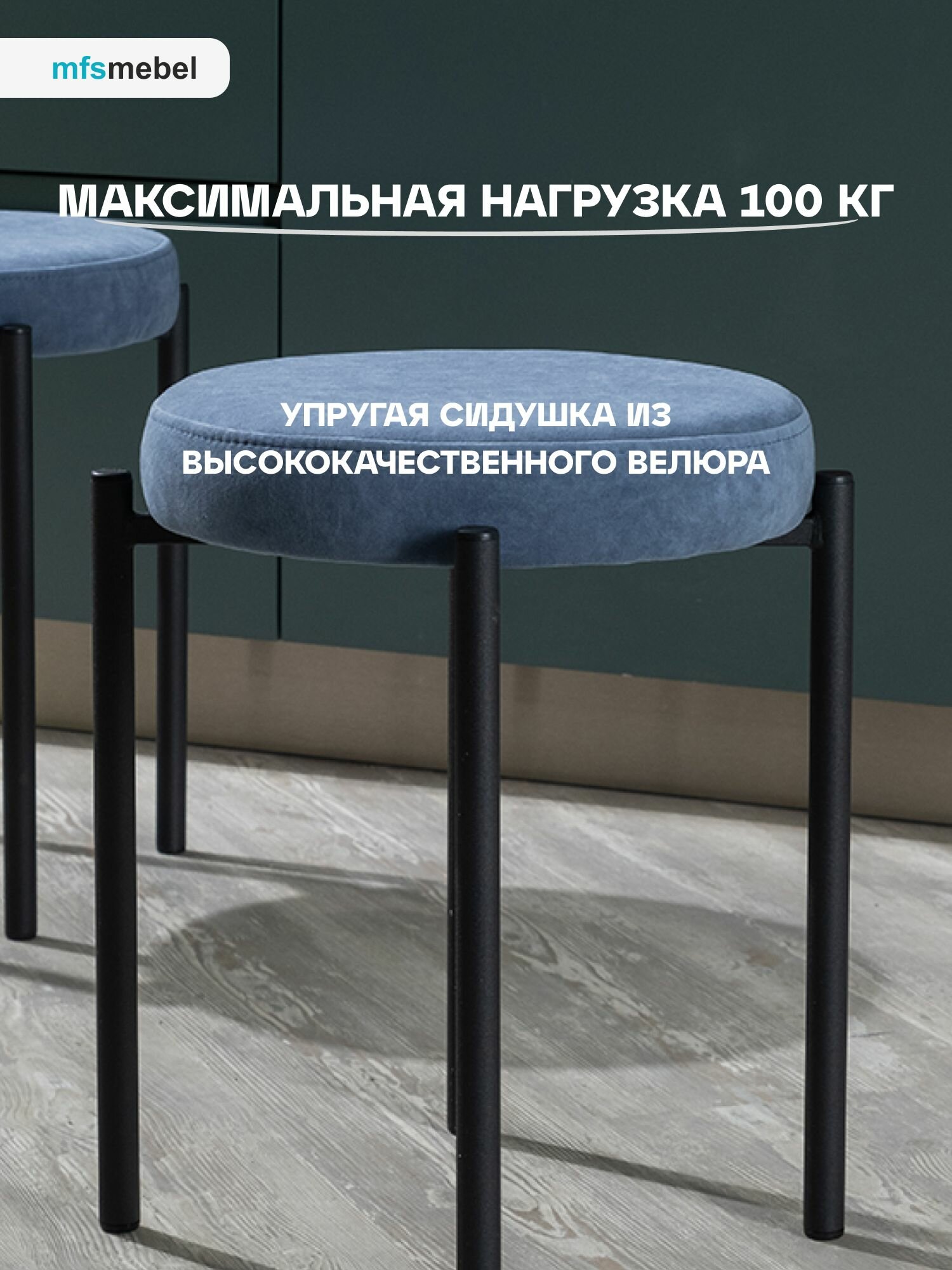 Комплект мягких табуретов Канапе 4 штуки, насыщенный синий/черные ноги 7 000 ₽
