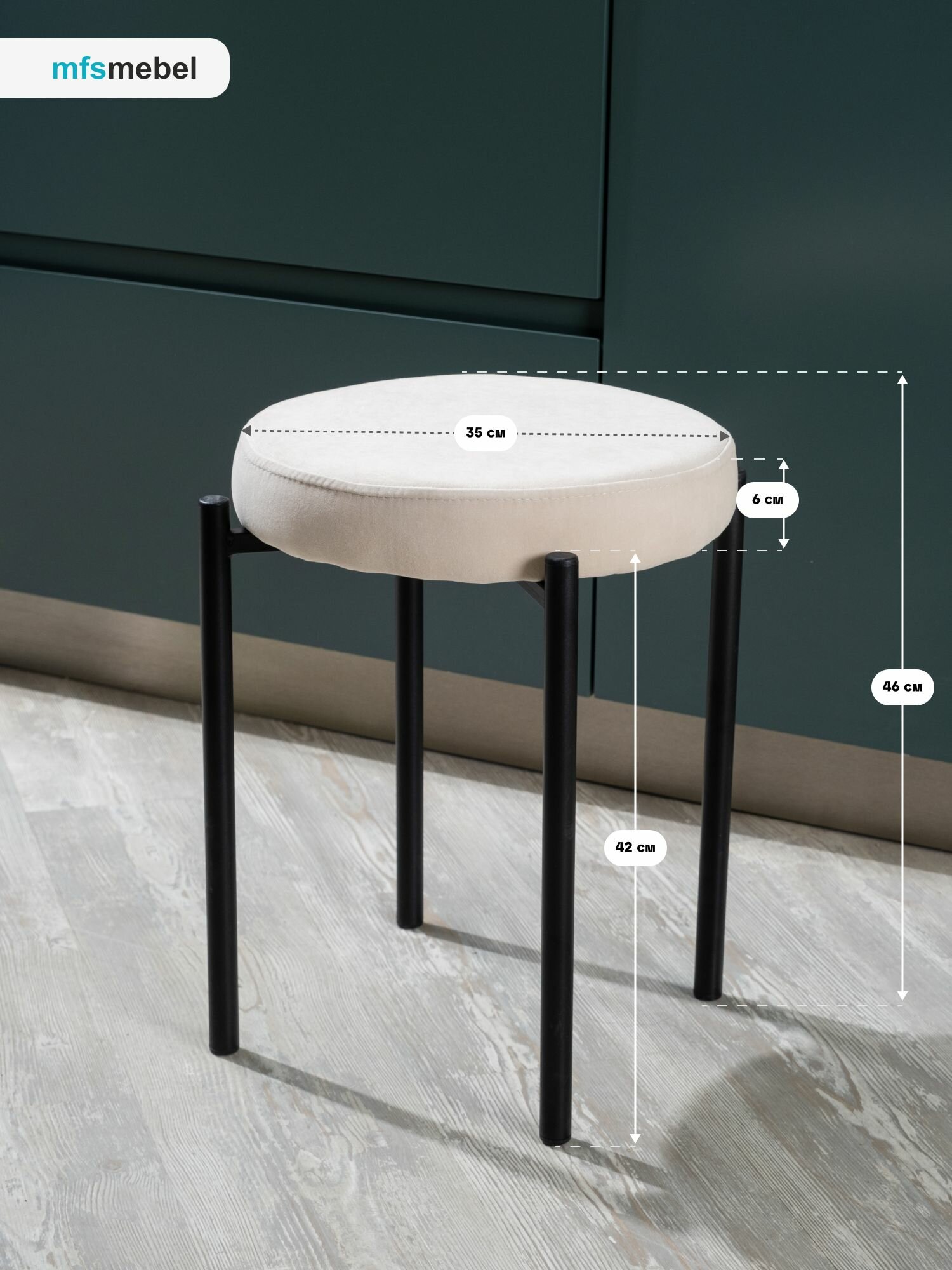 Комплект мягких табуретов Канапе 4шт, кремовый/черные ноги 8 000 ₽