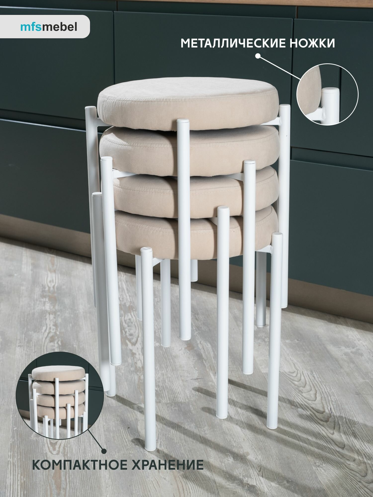 10 цен на Комплект мягких табуретов Канапе 4шт, бежевый/белые ноги