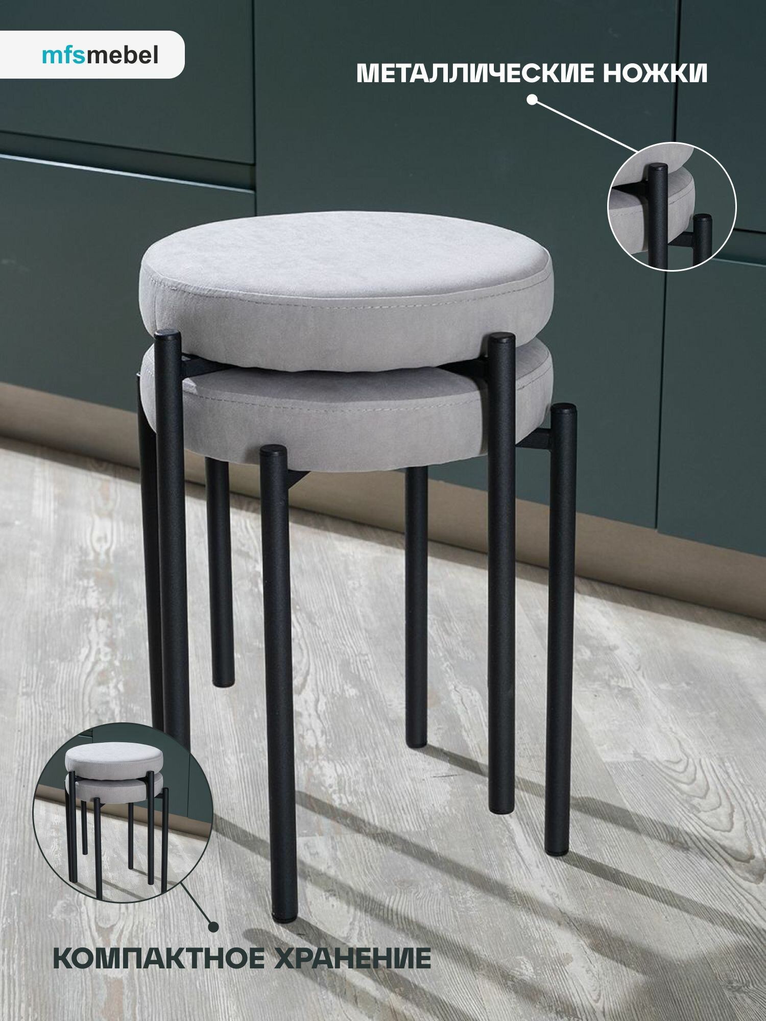 Комплект мягких табуретов Канапе 2 штуки, серый информация: