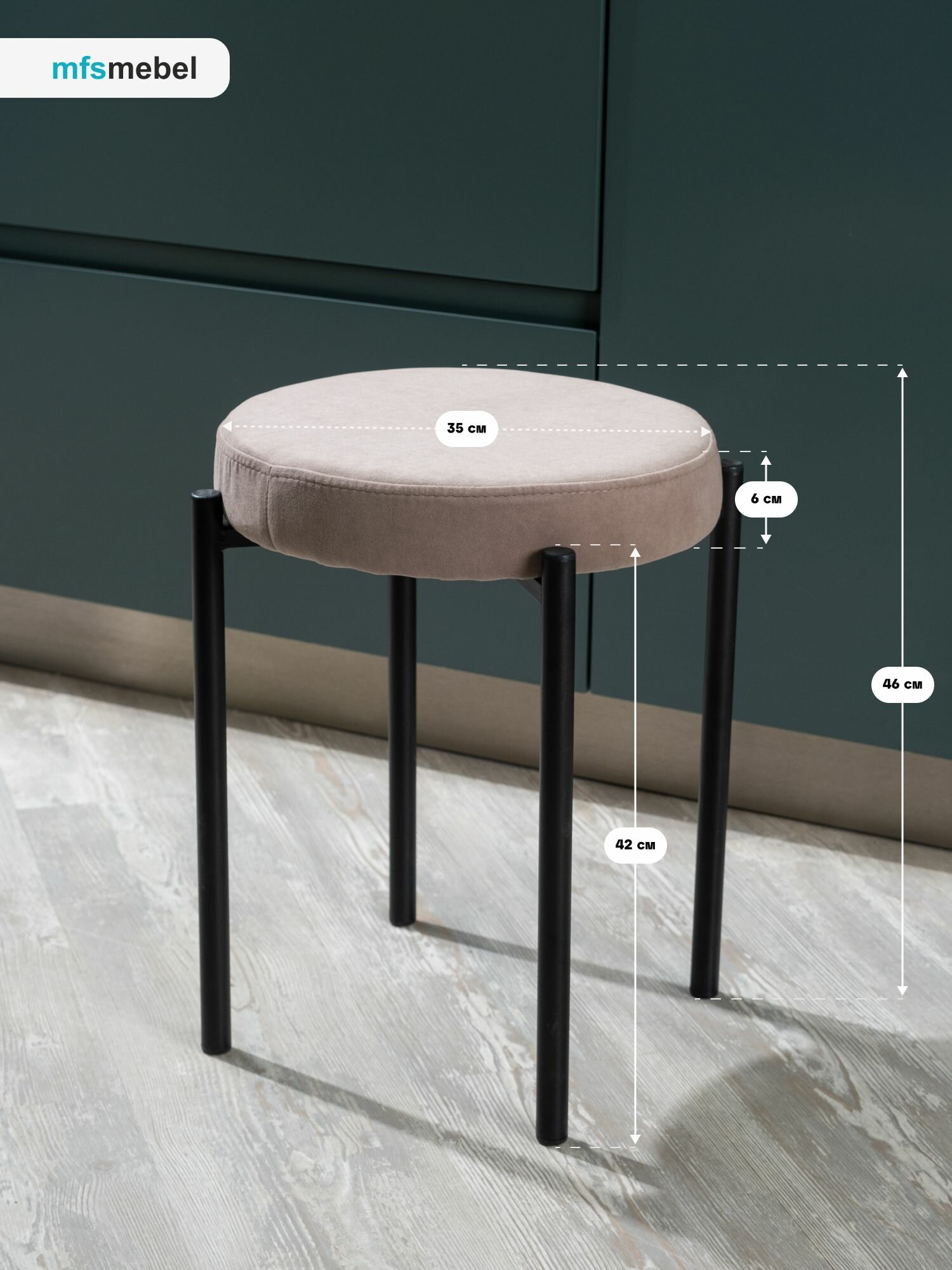 Комплект мягких табуретов Канапе 4шт, бежевый/черные ноги 5 371 ₽