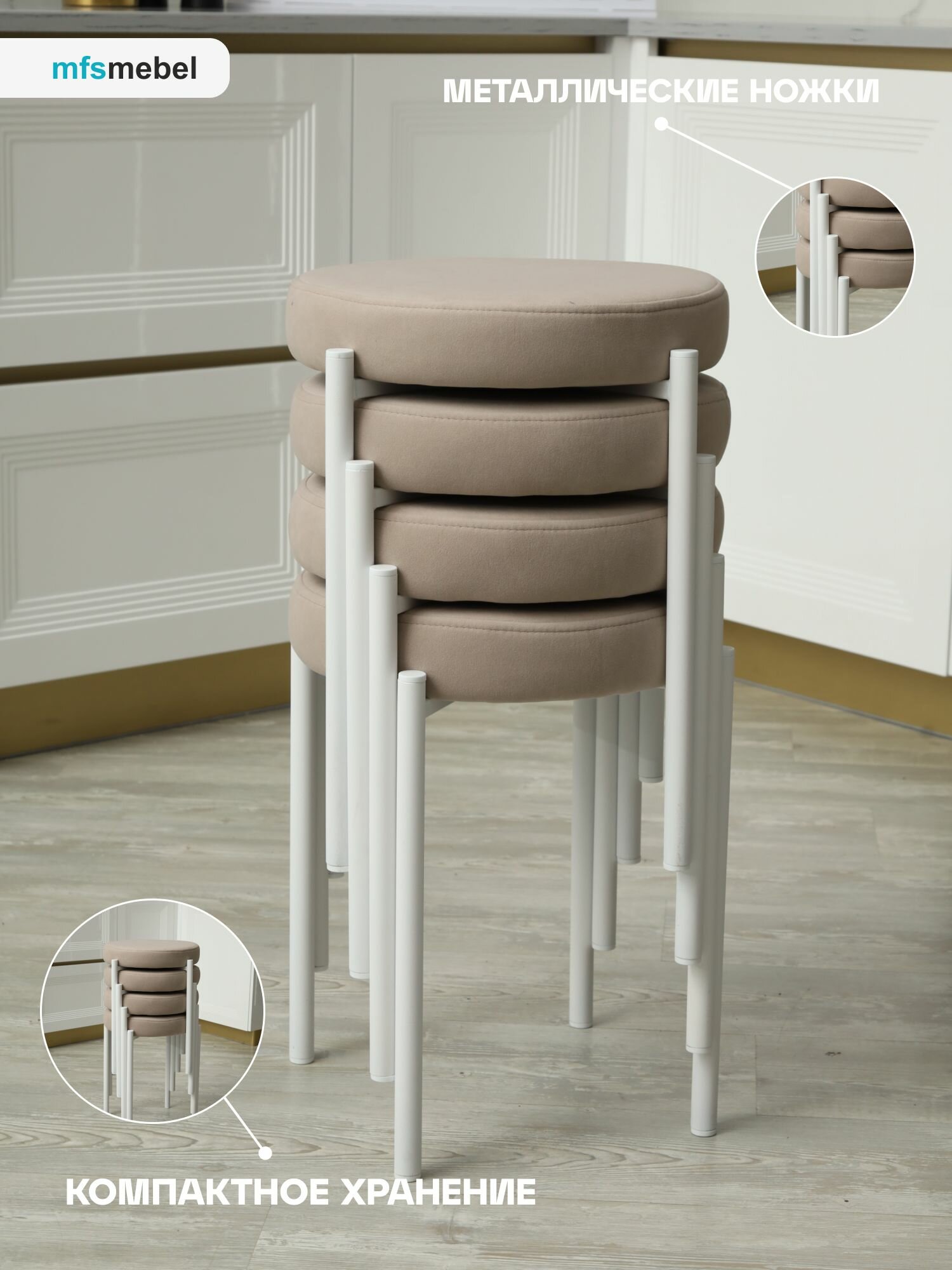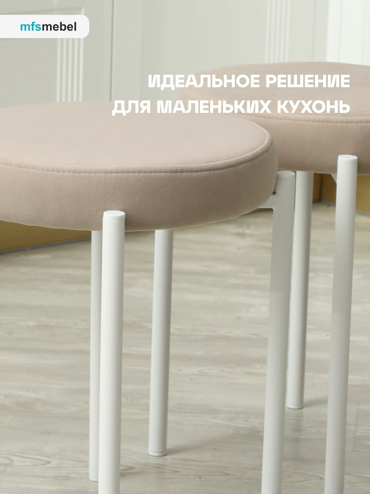 Комплект мягких табуретов Канапе 4шт, бежевый/белые ноги 6 826 ₽
