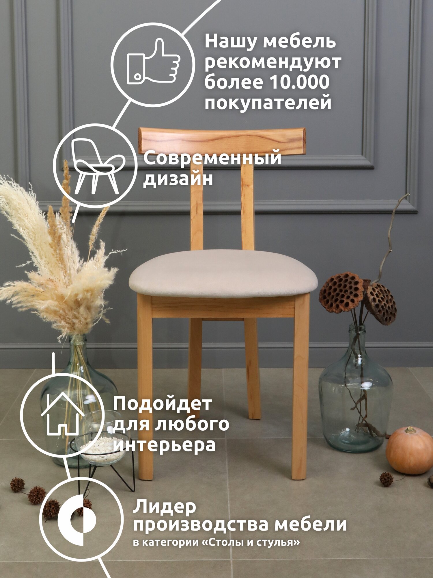 Отзывы на Стул для кухни и гостиной Фреска, кухонный деревянный стул со спинкой - 1 шт.