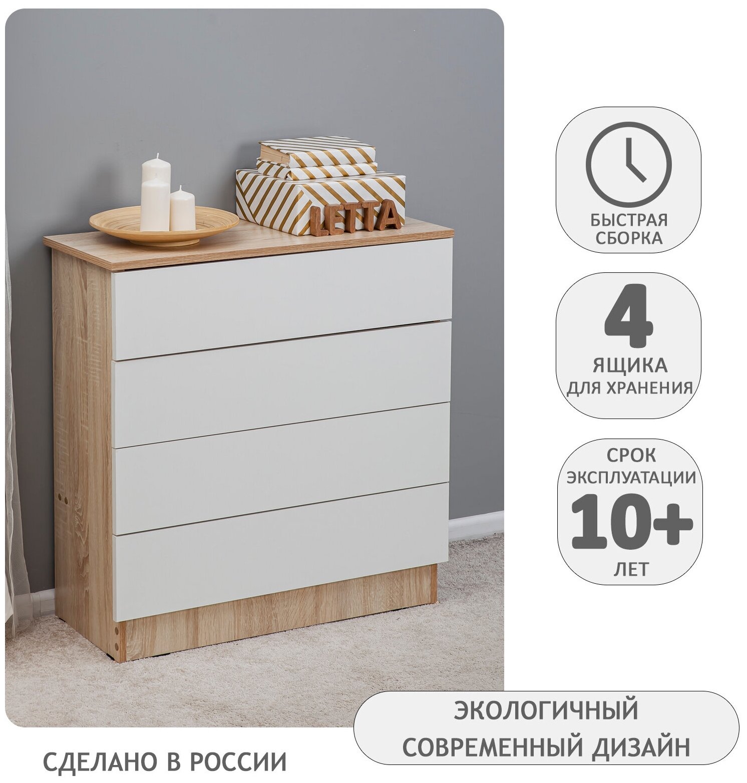 Комод LETTA "Ультра", 4 ящика, белый, ламинированный, ЛДСП, 77,8x32,5x79,4 см 5 190 ₽