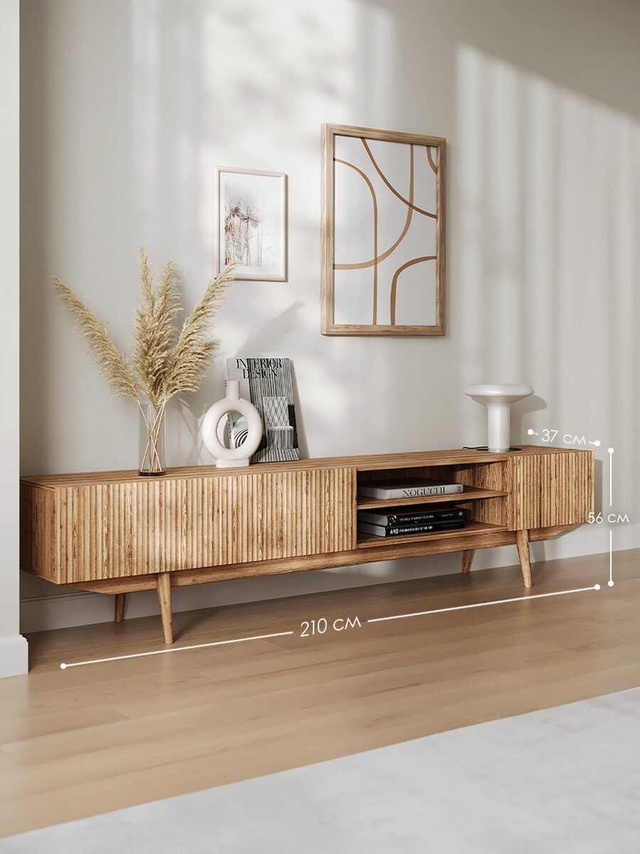 Отзывы на Тумба комод под телевизор Puzzlemebel Келли, напольная на ножках, 210 см, светло-коричневый