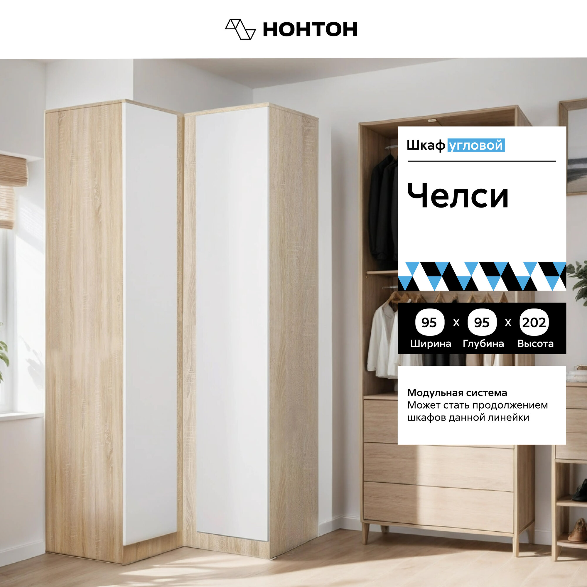 Шкаф угловой Миф Челси белый глянец / дуб сонома 95х95х202.2 см информация: