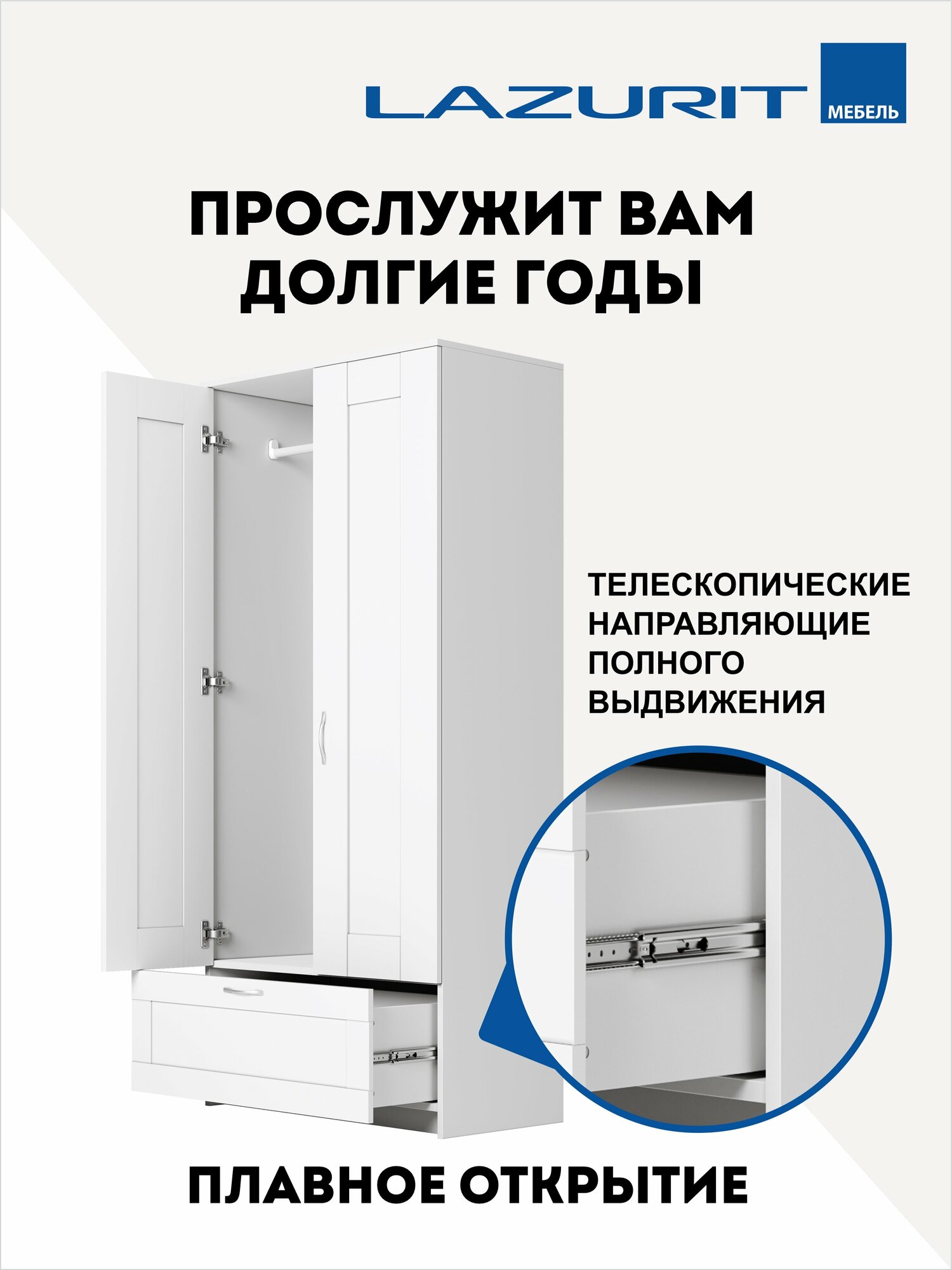 Отзывы на Шкаф для одежды белый Lazurit Classica распашной в прихожую 2 двери и 1 ящик штанга 79х51х190