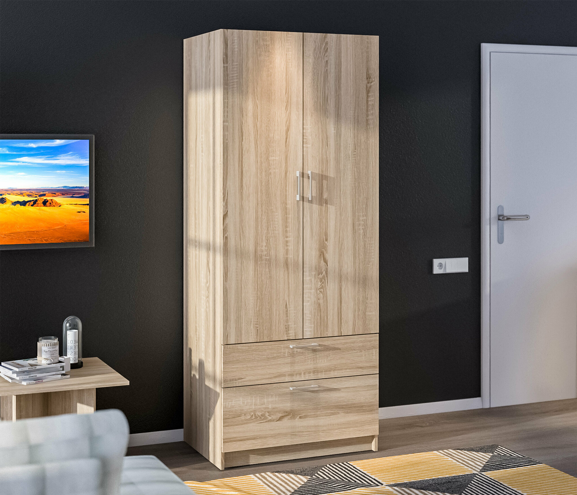 Шкаф двухдверный распашной, Далия эконом 2 800-450-2000, цвет Дуб сонома наполнение белье