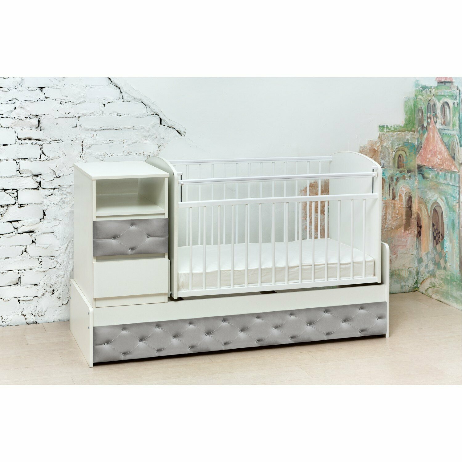 Кроватка трансформер для новорожденных 6 в 1, цвет серо белый