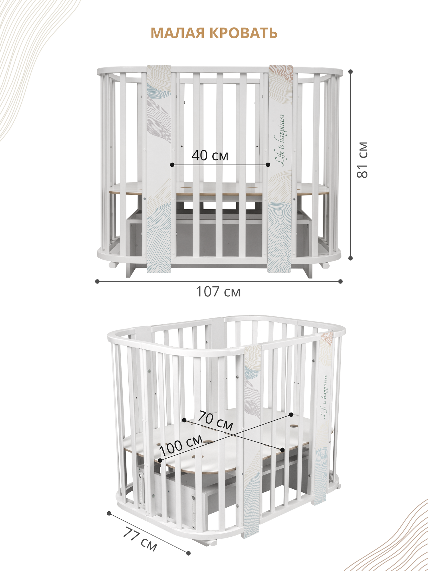 Кроватка трансформер для новорожденных 6 в 1, цвет серо белый