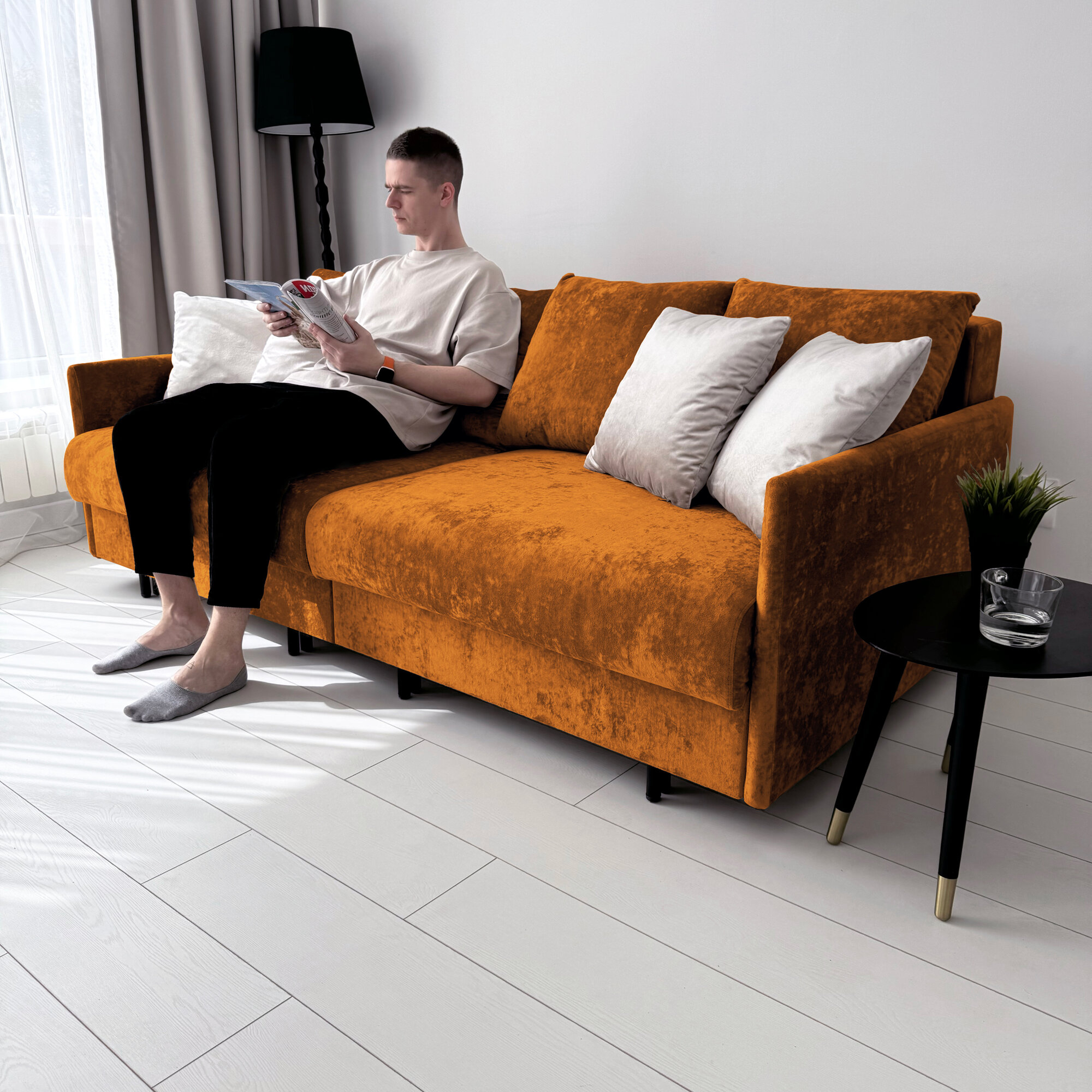 Отзывы на Диван-кровать Redsofa Модена 210см охра Ocean. Раскладной прямой диван со съемными чехлами Редсофа, для дома и офиса