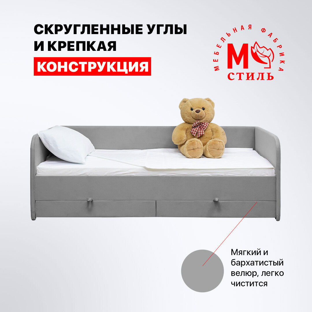 10 цен на Диван-кровать Софт 1900*800 серая на ортопедическом основании с ящиками для хранения, кровать детская от 3 лет