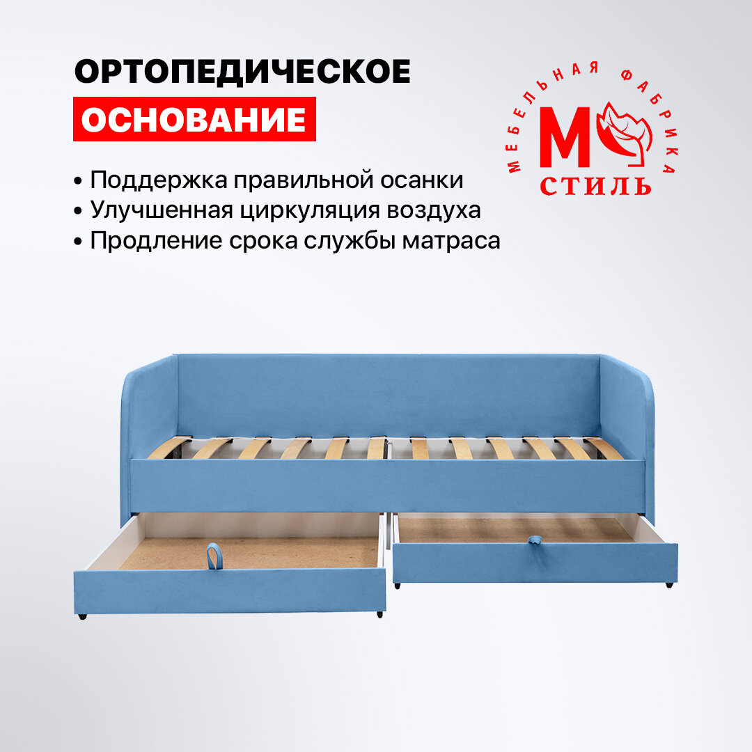 Диван-кровать Софт 1900*800 голубая на ортопедическом основании с ящиками для хранения, кровать детская от 3 лет информация: