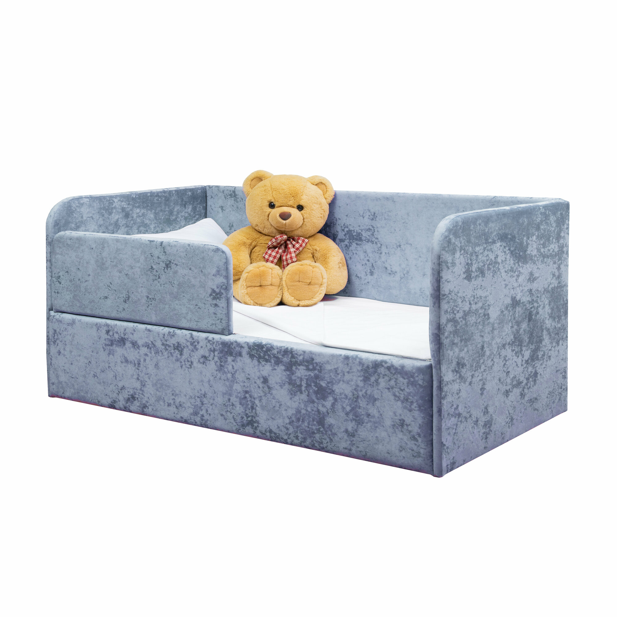 Кровать-диван Непоседа 160*80 голубая , с защитным бортиком, прямая информация: