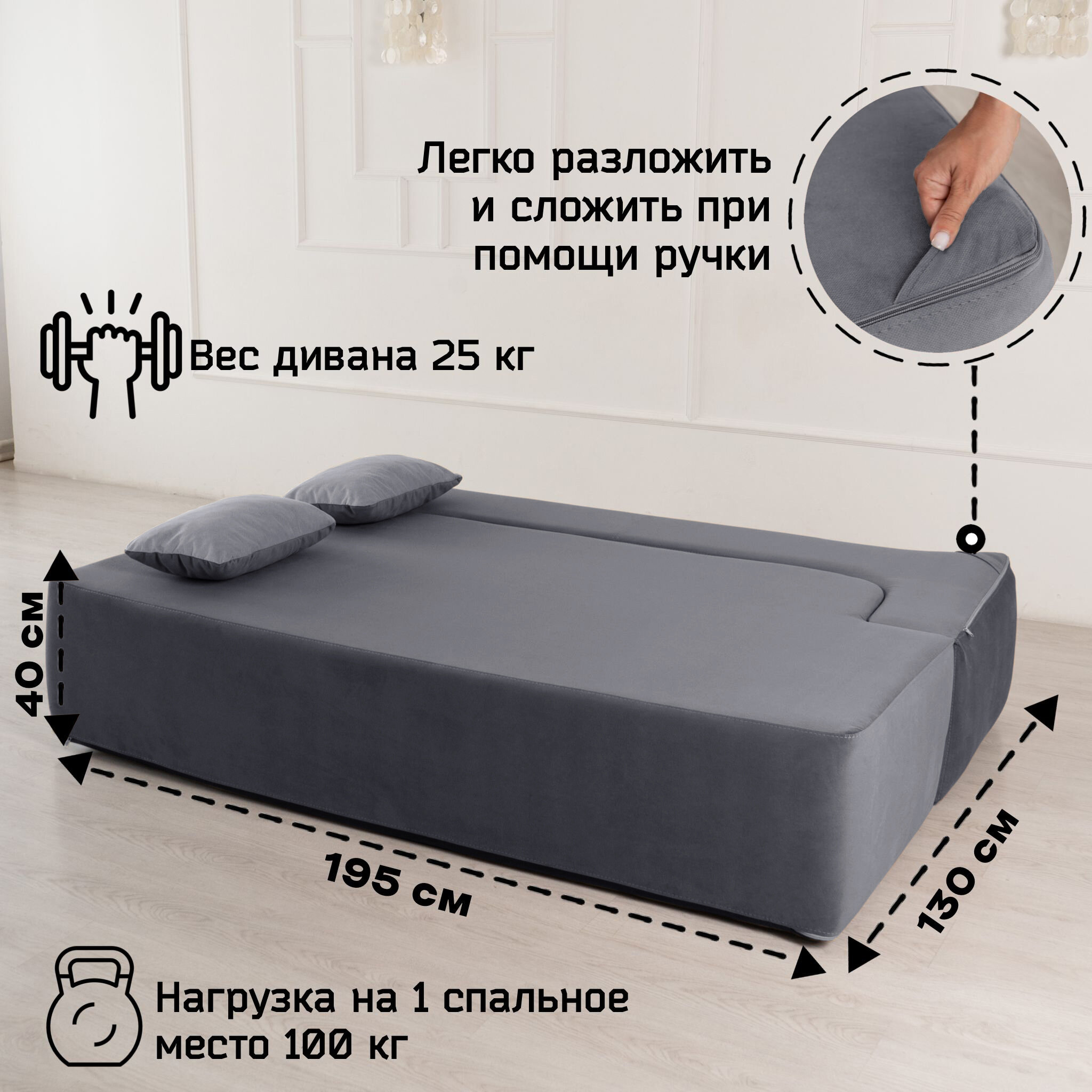 Диван раскладной двухместный Дадли Лайт 195*105*80 см, трансформер, бескаркасный, со спальным местом 195*130 см, серый 33 863 ₽