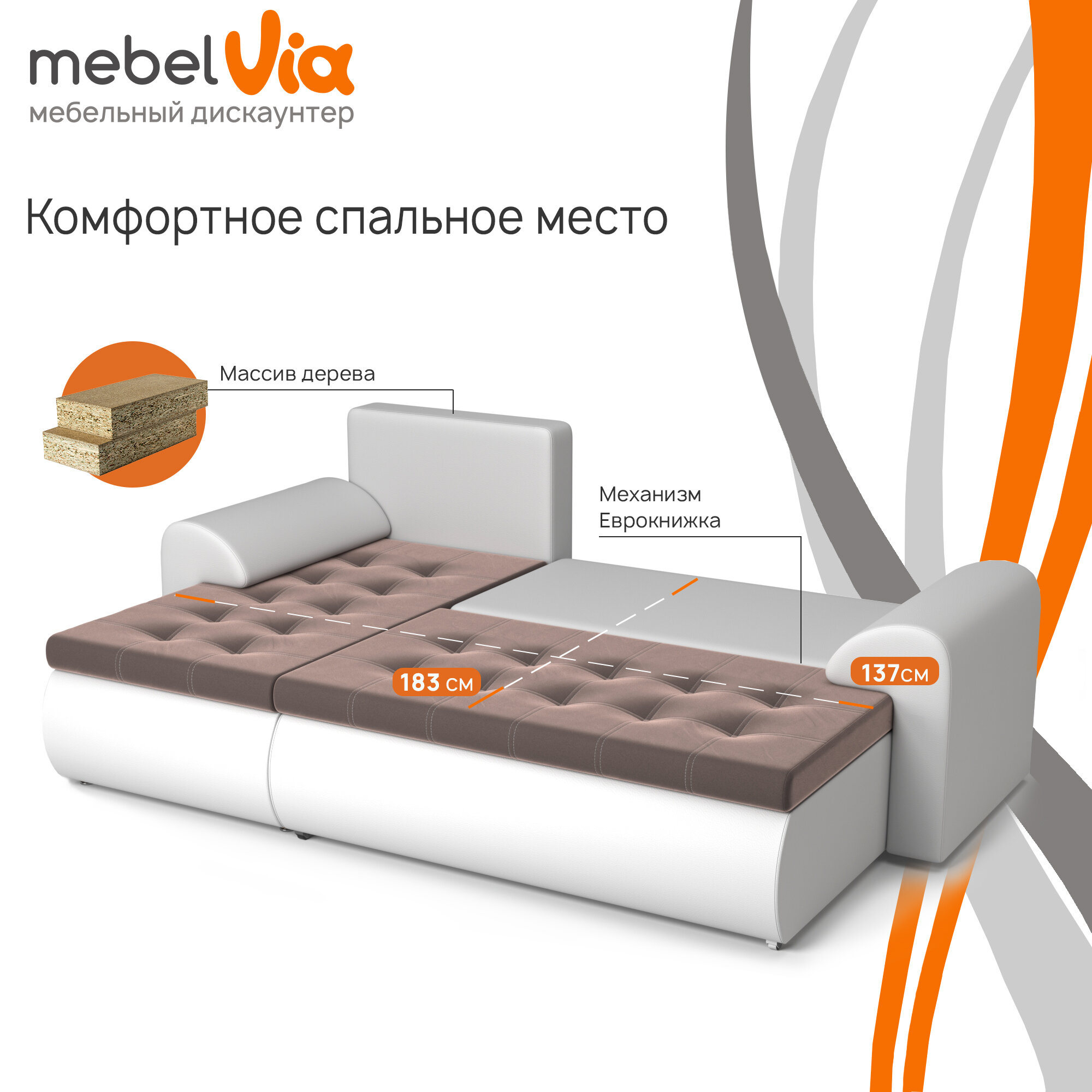 10 цен на Угловой диван Ванкувер Левый, коричневый, белый, искусственная кожа, велюр