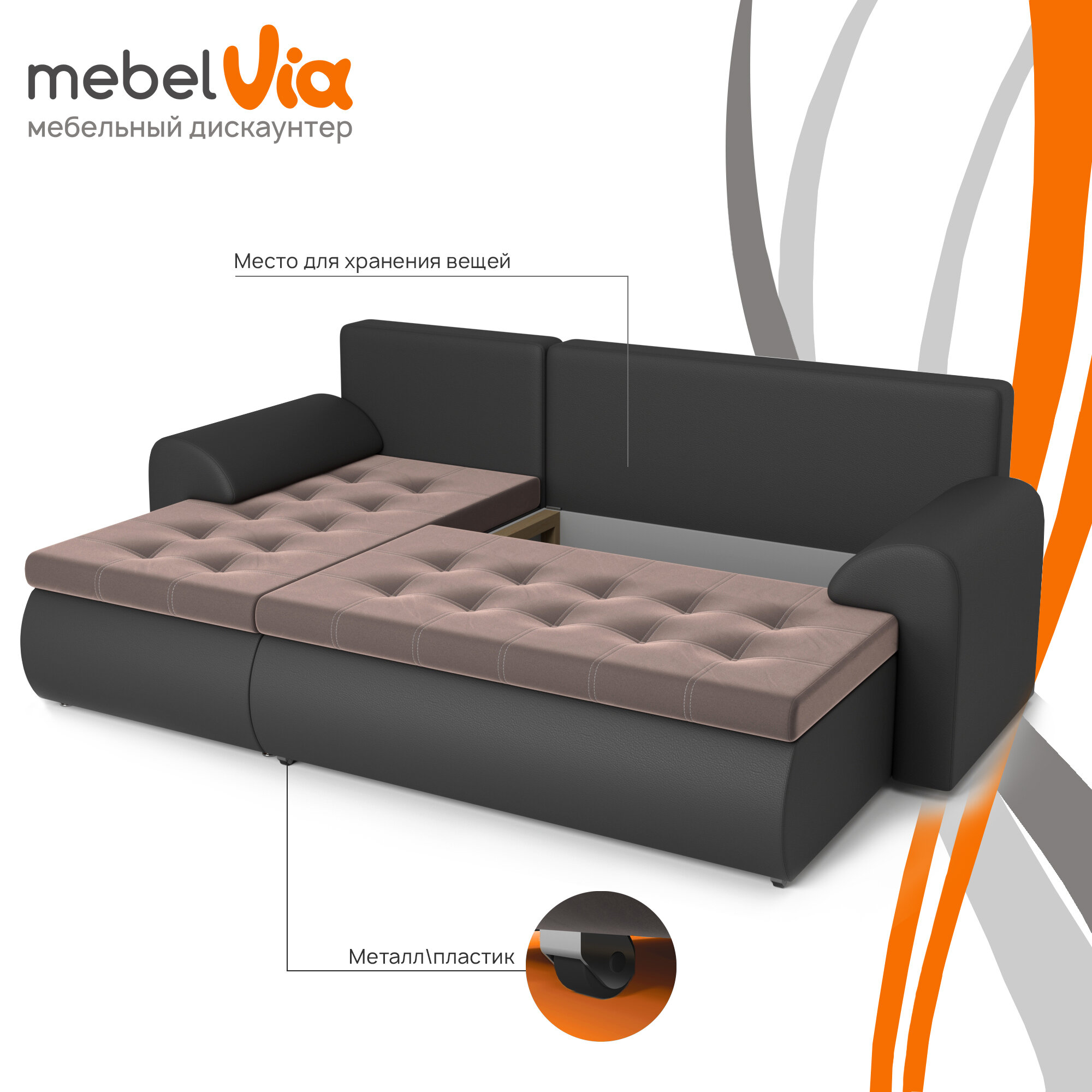 Угловой диван Ванкувер Левый, коричневый черный, искусственная кожа, велюр информация: