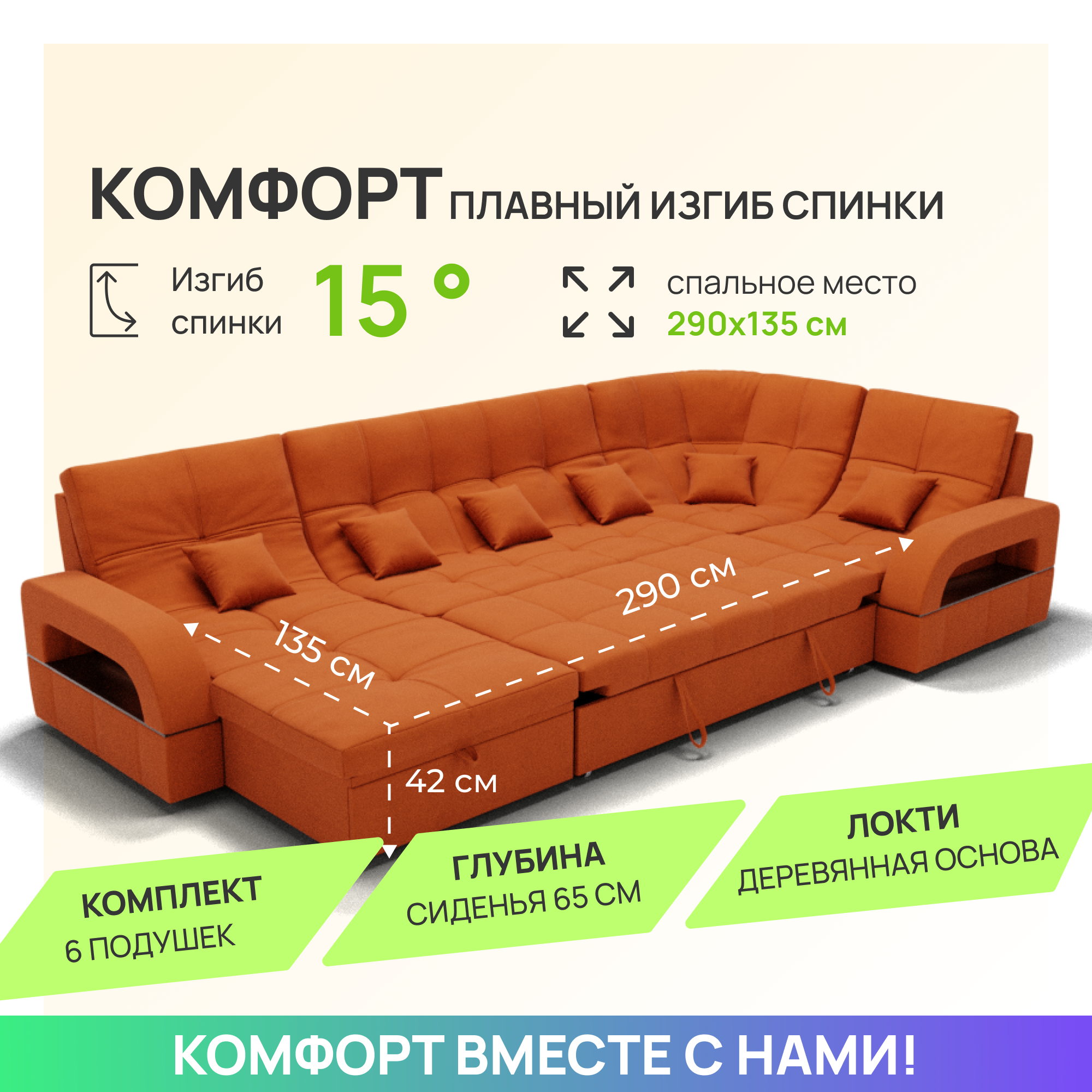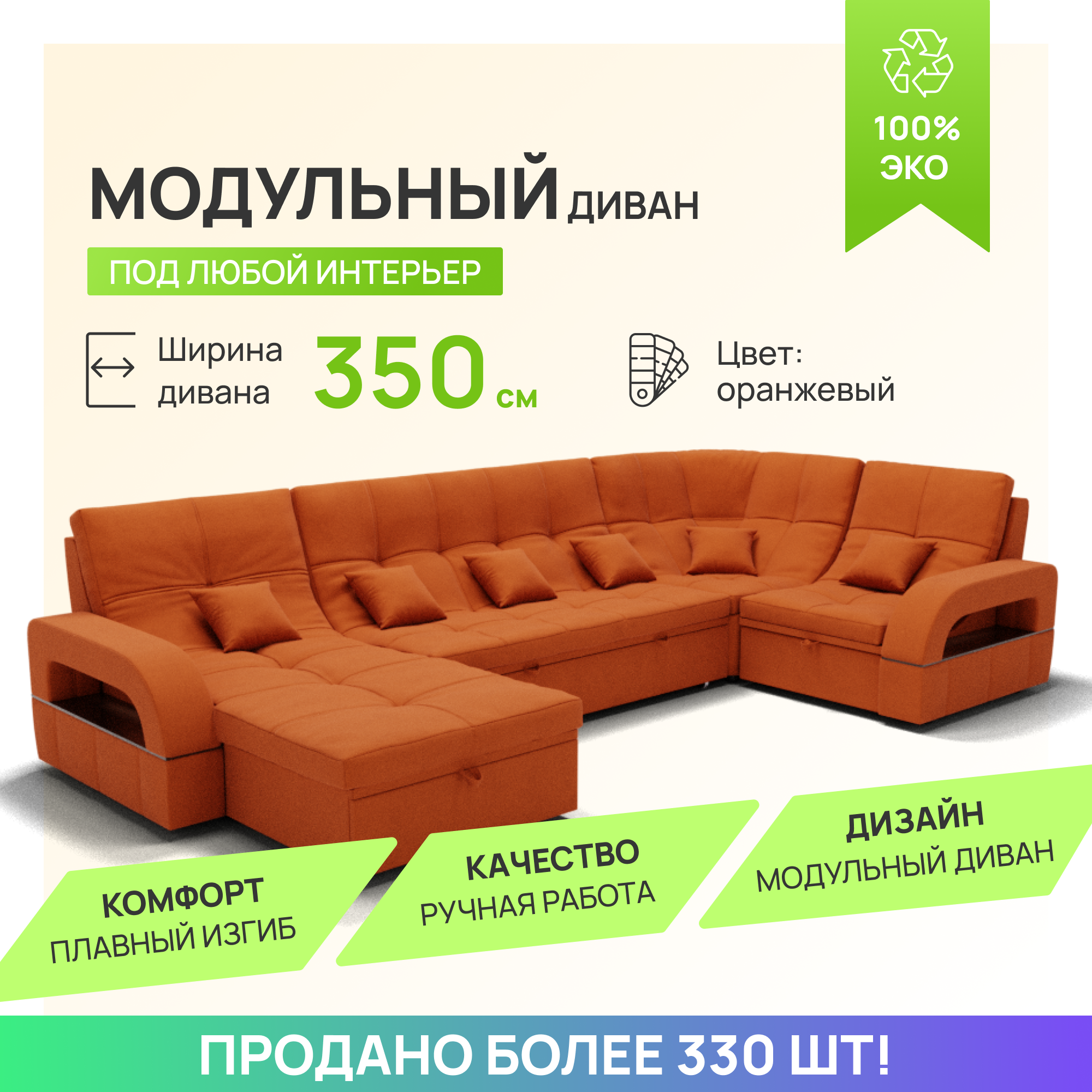 10 цен на Модульный диван, Майами-4 ,Велютта люкс 58 премиум класса YORCOM,350x135x97,Оранжевый. Велюр,ППУ,ДВП,Дерево,механизм Венеция.