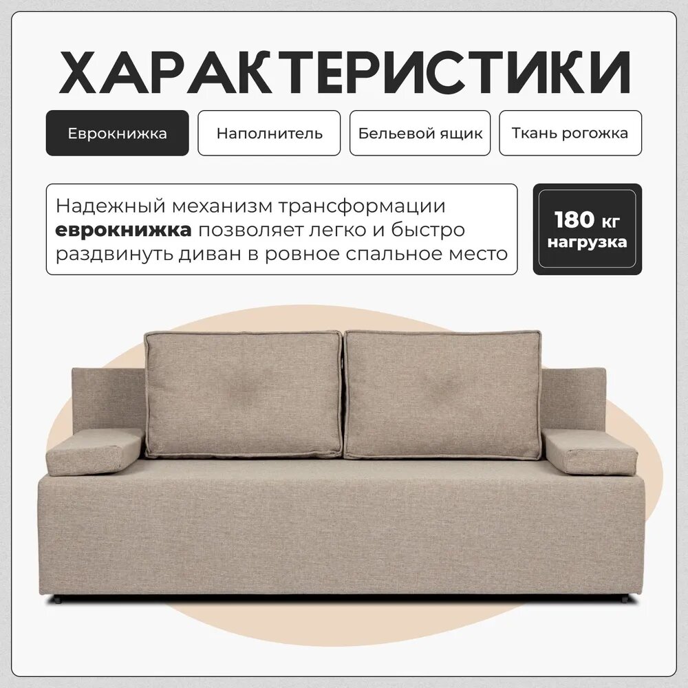 Диван-кровать Турин лайт бежевый двуспальный раскладной для дома Divan24 информация: