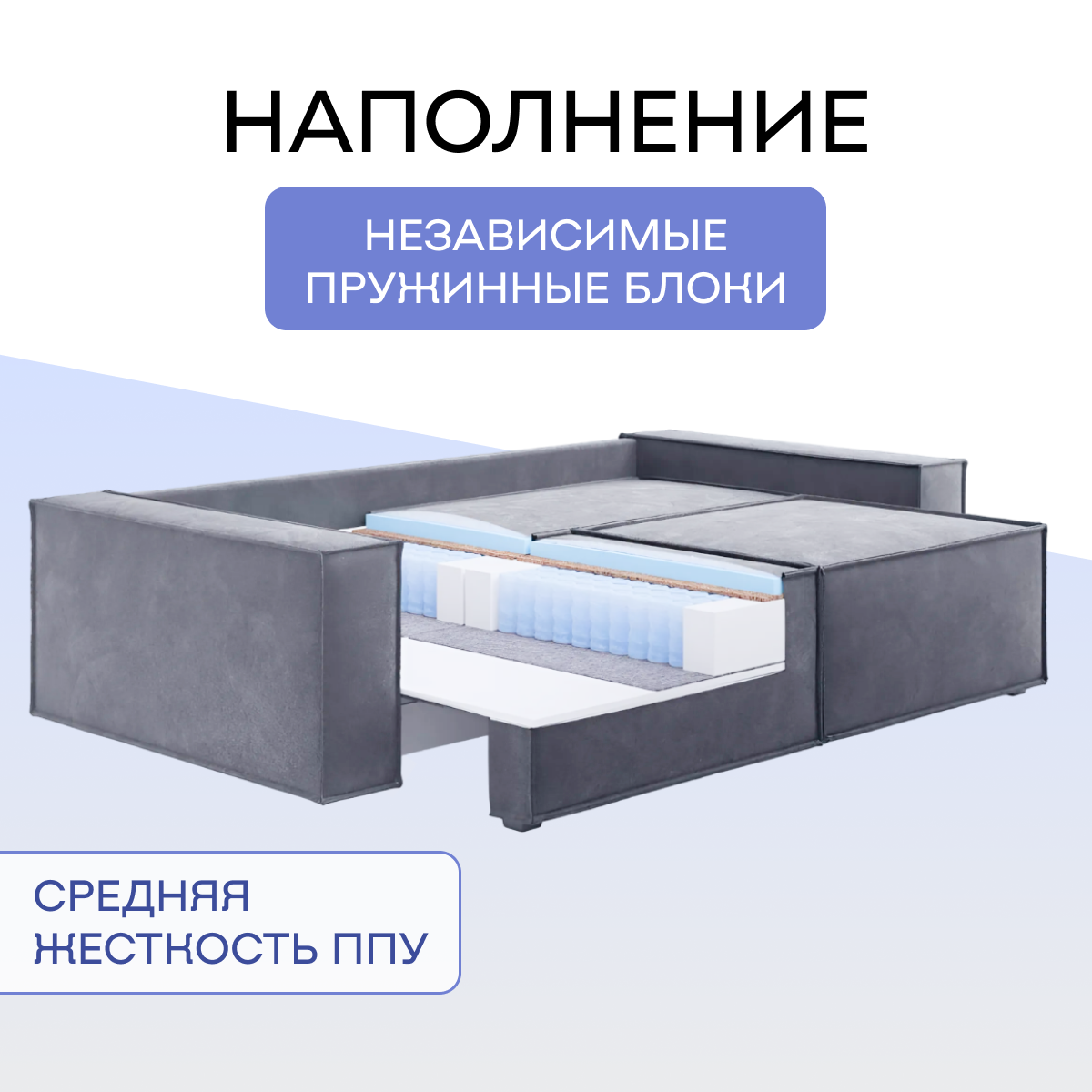 | Особенности | модульный, пружинный блок, раскладная конструкция, с подлокотниками, съемные подушки, ящик для белья |
