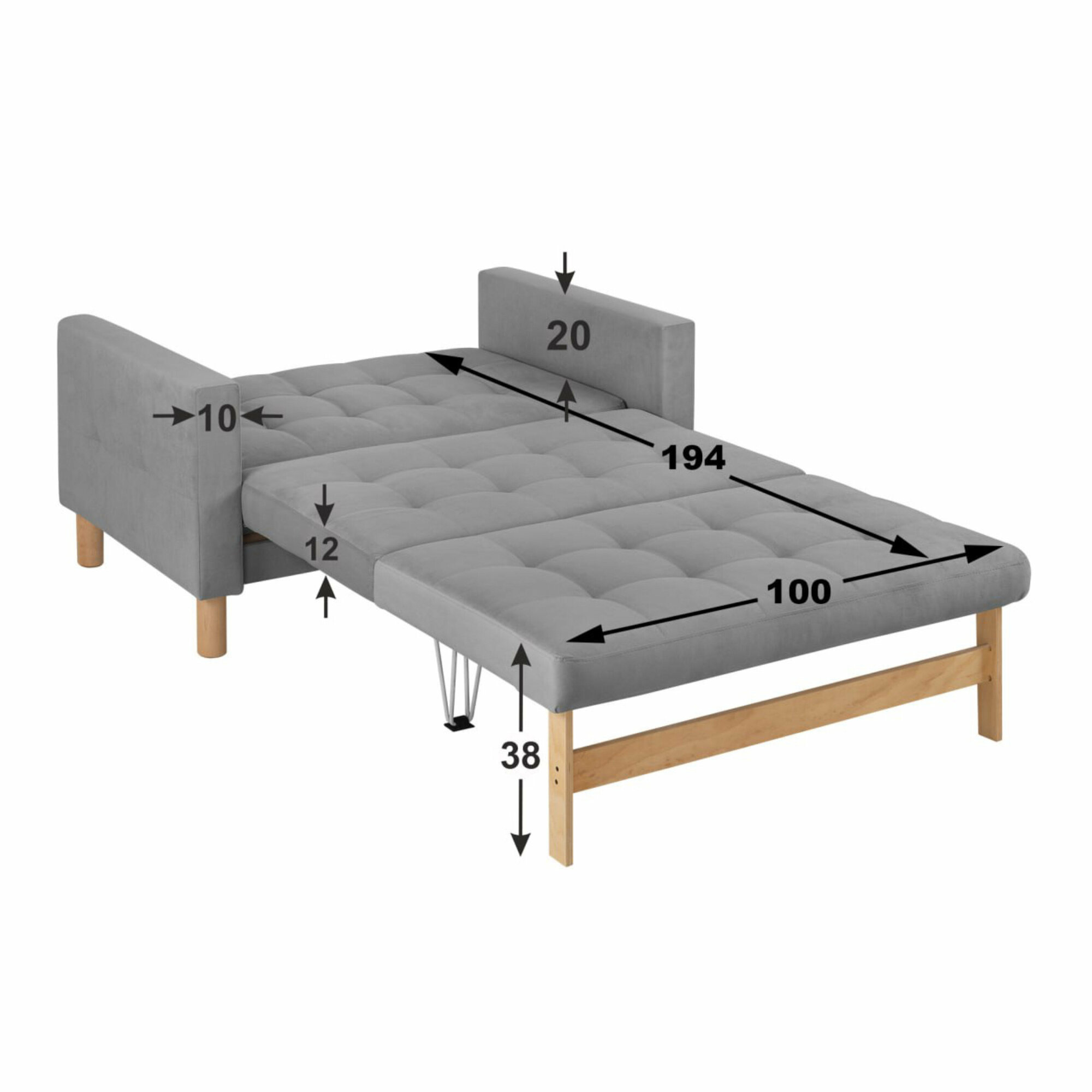 10 цен на Диван-кровать Монро, прямой, 122*77*78, спальное 100*194, велюр серый, Велутто 32