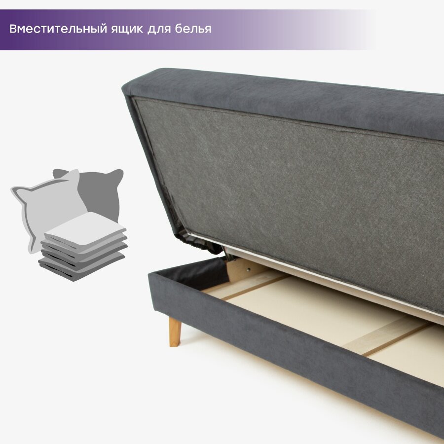 Диван мягкий прямой механизм книжка, Астерия Лайт, 1880х980х895,цвет серый, Мебельная Фабрика Аврора информация:
