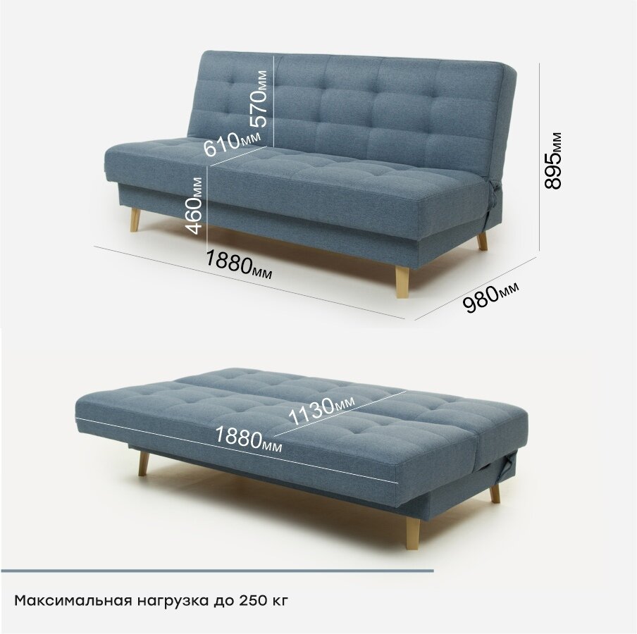 Диван мягкий прямой механизм книжка, Астерия Лайт, 1880х980х895,цвет Голубой, Мебельная Фабрика Аврора информация: